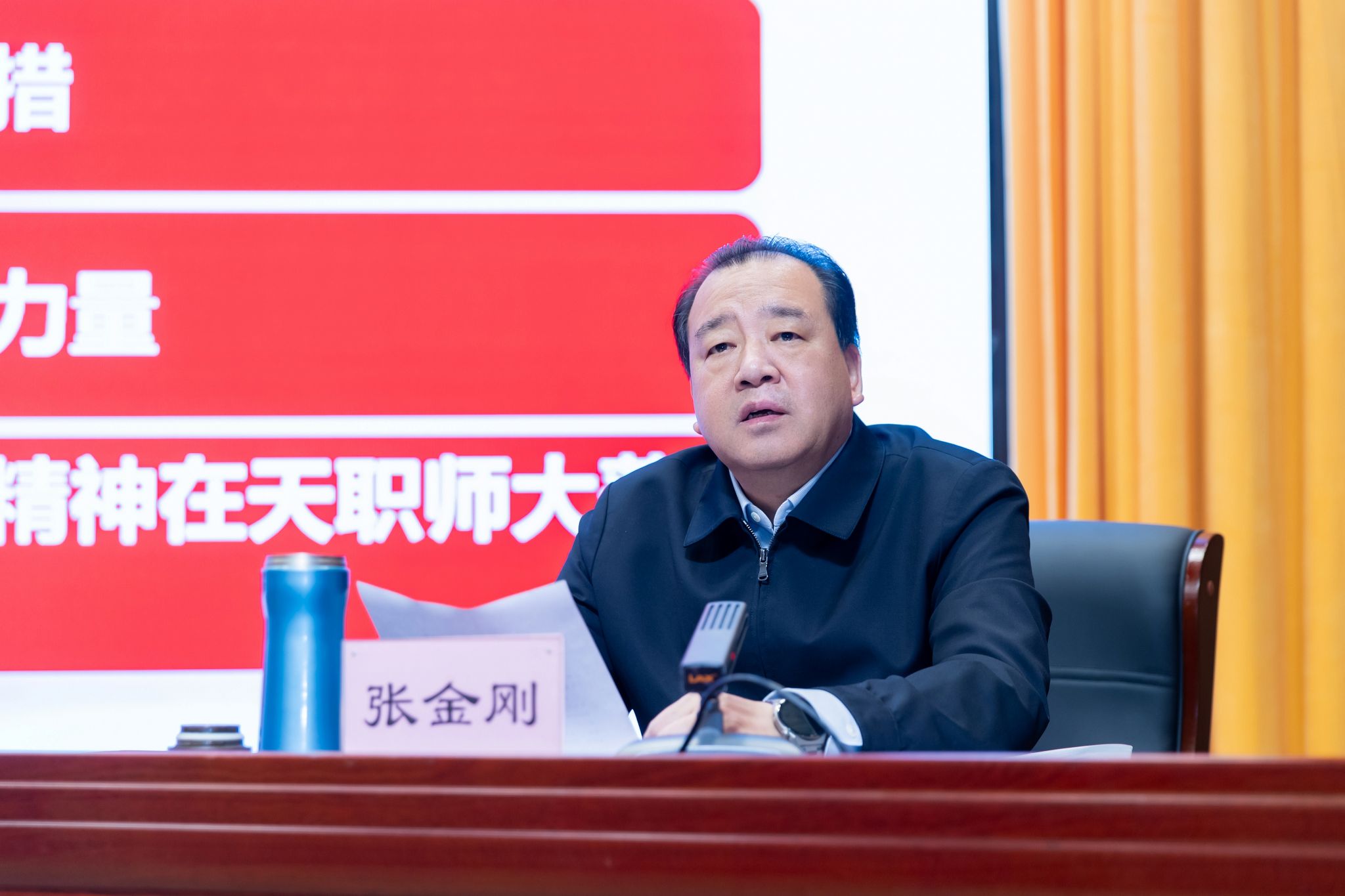 张金刚要求,要全力以赴抓好全会精神贯彻落实,推动全会精神在天职师大落地生根、取得实效。要加强组织领导,迅速兴起学习热潮、“三进”热潮、宣传热潮、研究热潮、落实热潮;要组织学习培训,把全会精神作为党委理论学习中心组重点内容、干部教育培训必修课程和思想政治教育重要内容,确保深刻领会;要广泛开展宣讲,精心组织备课,拓宽宣讲渠道,改进宣讲方法,确保宣讲成效;要加强宣传阐释,做好主题宣传,推出一批有分量的深度报道、评论和理论文章等,准确解读全会精神;要推动融入课堂,开好“形势与政策”课,将全会精神及时高质量融入思政课课堂教学;要推进强校建设,坚持学用结合,对标全会精神,结合实施强校行动、进一步深化改革加快推进学校高质量发展等重点任务,认真做好学校“十五五”规划编制和实施,奋力建设中国特色、世界一流职业技术师范大学。