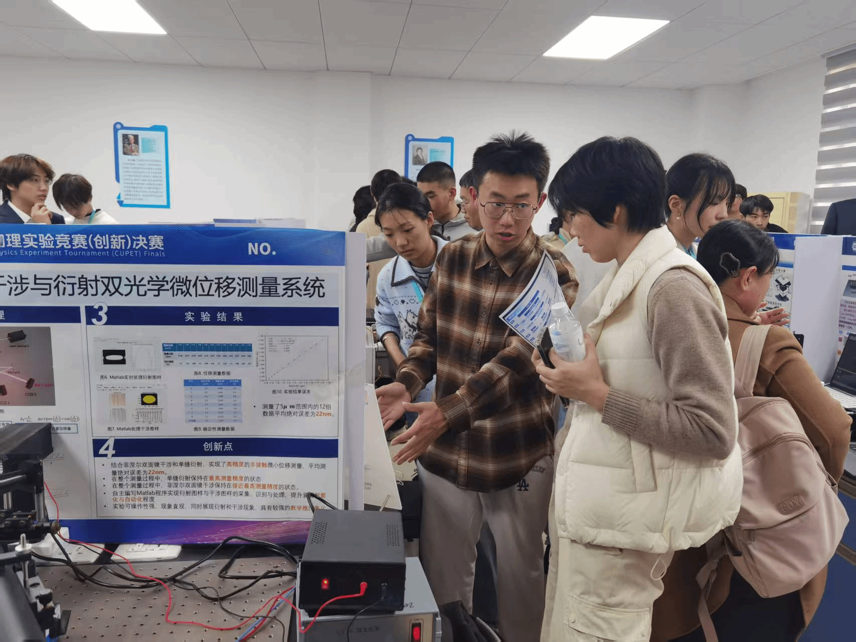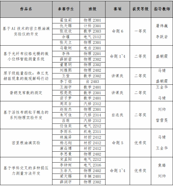 自竞赛启动以来,学校高度重视,由学校教务处牵头,理学院精心组织、认真指导,组建了由经验丰富的教师组成的指导团队,从选题论证、方案设计、实验操作到报告撰写等环节给予学生全方位指导。校级选拔赛共推出14支队伍、60名学生参加全国大学生物理实验竞赛(天津赛区)比赛,最终我校有7支队伍代表天津市参加全国大学生物理实验竞赛(创新)比赛的角逐。其中,由理学院教师屠炜巍、李跃岩指导,理学院、信息技术工程学院和自动化与电气工程学院学生组成的队伍获得命题类赛项全国一等奖,充分展示了我校学子在物理实验方面的专业素养和竞技水平。