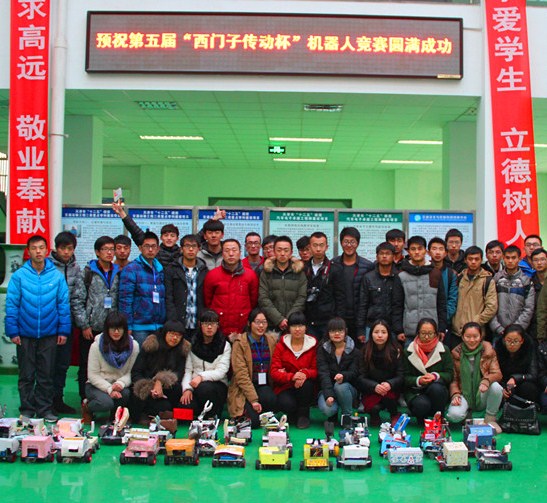 为提高学生的科技创新能力,我校加强与西门子电气传动有限公司的战略合作,12月16日下午,由自动化与电气工程学院承办的第五届“西门子传动杯”机器人竞赛决赛在汽车楼一楼大厅举行。副校长孙奇涵、校团委书记郝评、校党委宣传部副部长马晓蕾、机械工程学院党委副书记刘晶、汽车与交通学院党委副书记霍彤、自动化与电气工程学院领导班子成员及相关老师参加。
