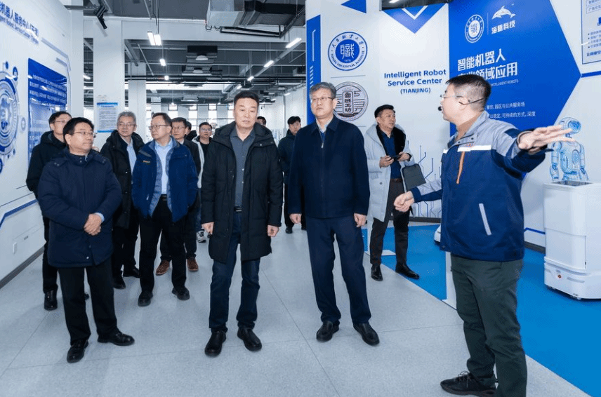 在机电工程与自动化学院,院长郑伟详细介绍了学院 “教、学、做一体”的人才培养模式。在天津市智能制造产业学院,郑清春一行深入了解产业学院紧密对接区域产业发展的实践经验,调研学院在智能制造、机电一体化等专业领域形成的产教融合“天津模式”;在开放型产教融合实践中心,详细调研如何通过校企合作实现资源共享,推动校企深度融合;在智能机器人服务中心(天津),郑清春一行详细了解该中心在机器人前沿技术突破、人工智能多场景应用创新方面的探索,以及工业自动化控制系统在技术创新、功能优化方面的最新成果。