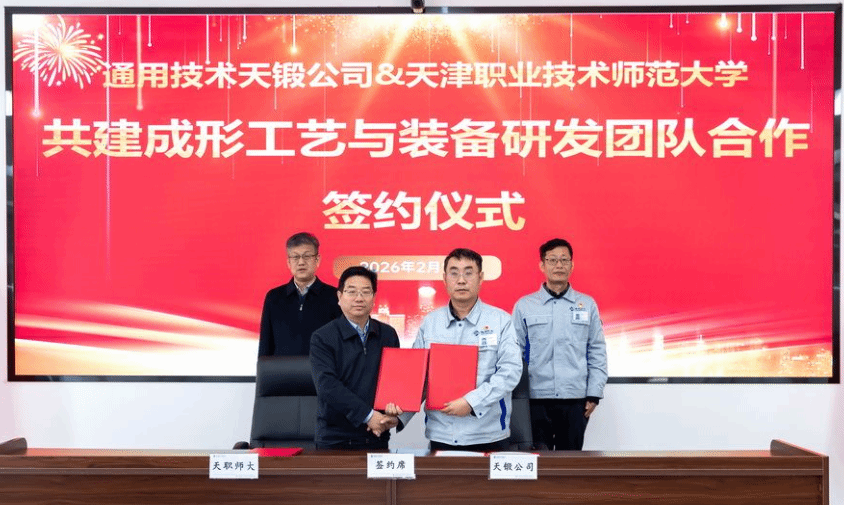 在双方与会人员的共同见证下,蔡玉俊与天锻公司科技创新部部长杜丽峰分别代表校企双方签署战略合作协议,标志着双方校企合作正式迈入实体化运作、全方位深度融合的新阶段。根据协议,双方将基于前期共同搭建的“天津市高性能精准成形制造技术与装备重点实验室”和“材料智能成形装备研究院”,共同组建“成形工艺与装备联合研发团队”,聚焦成形工艺与模具设计、智能生产线搭建、智能工厂数字化技术研发等核心方向,探索共建卓越工程师学院,共同培养一批高素质、复合型的工程技术与科研人才,开展协同创新和联合攻关,形成具有自主知识产权的研究成果,助力产业技术升级。