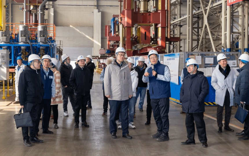 签约仪式结束后,在刘林志的陪同下,郑清春一行深入天锻公司重型装备制造车间、总装车间及企业展厅,实地察看高端压力机的设计、制造、装配全流程,详细了解企业在技术创新、智能制造、质量管控等方面的最新成果和实践经验,进一步深化了对企业发展需求的了解,为后续校企精准合作奠定了坚实基础。