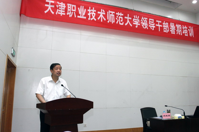 7月30日上午,我校为期四天的2015年领导干部暑期集中培训拉开帷幕。校党委书记孟庆国做了开班动员。中共中央党校周熙明教授应邀来校作首场报告《社会主义核心价值观与文化思维》。