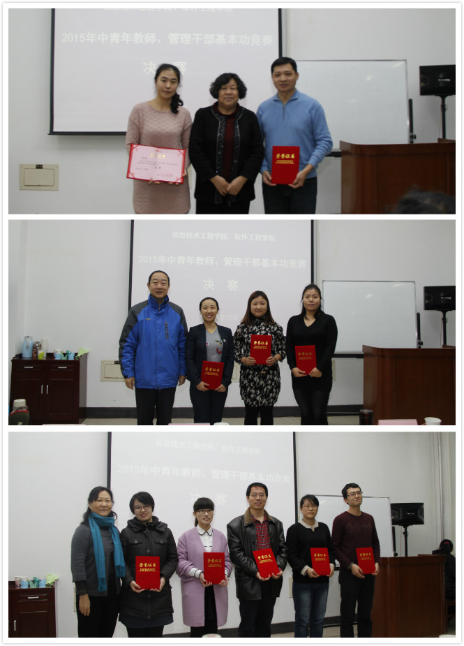 经角逐,数字媒体系教师菅光宾以其出色的表现摘得讲课比赛桂冠,软件工程系教师李典蔚、计算机基础教学中心教师蔺媛媛荣获比赛二等奖,数字媒体系教师郭桂英、计算机基础系教师李立宗、网络工程系教师张建勋荣获比赛三等奖,数字媒体系教师王潇、计算机工程系教师陈静、软件工程系教师龚良波获得优秀奖。在管理干部基本功竞赛中,学院行政秘书卜艳艳荣获比赛一等奖,辅导员陈萌荣获比赛二等奖,辅导员林娇、教学秘书赵珊珊荣获比赛三等奖。经过大众评委的评选,李典蔚同时获得“园丁奖”和“最佳魅力奖”。