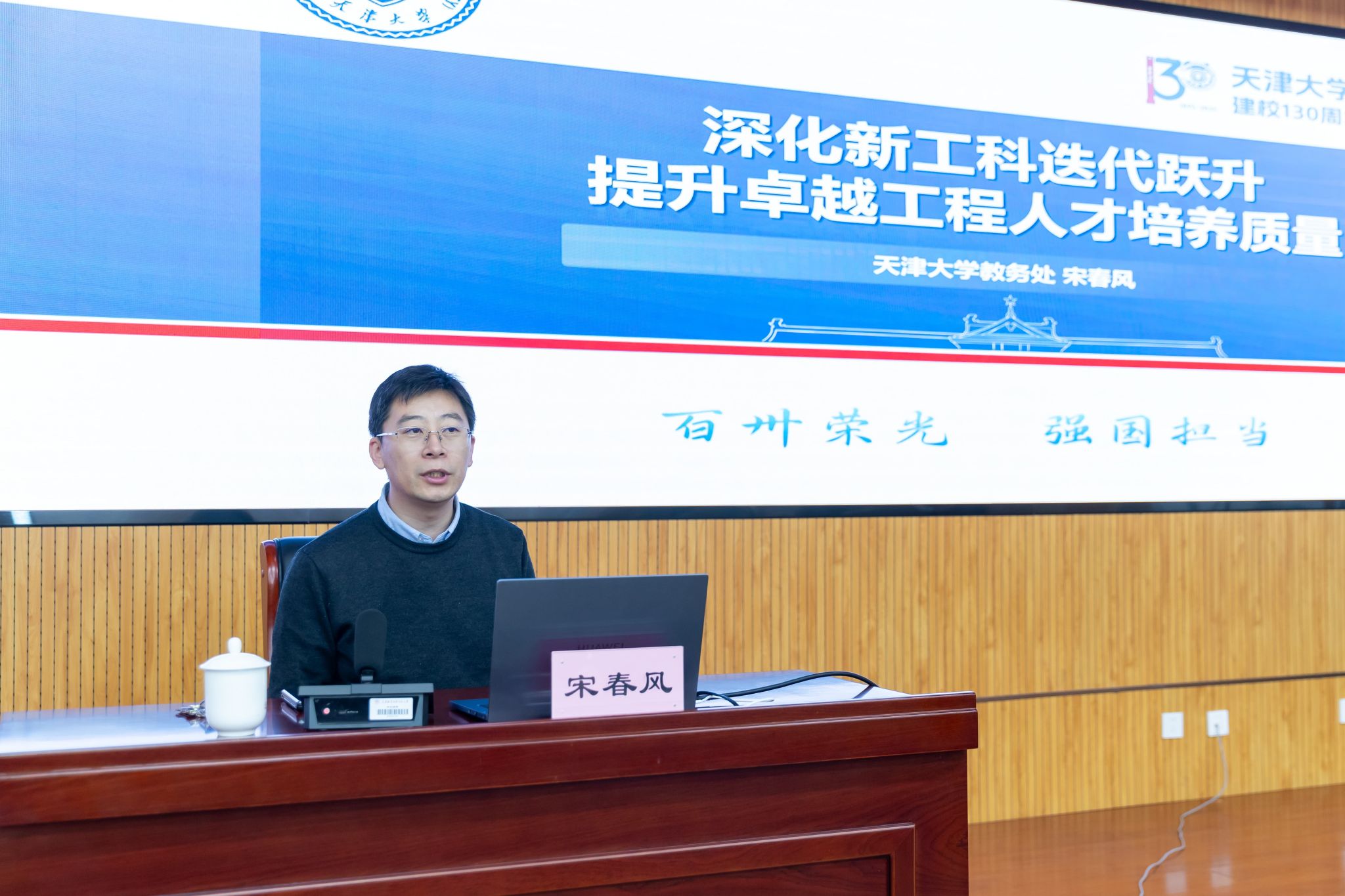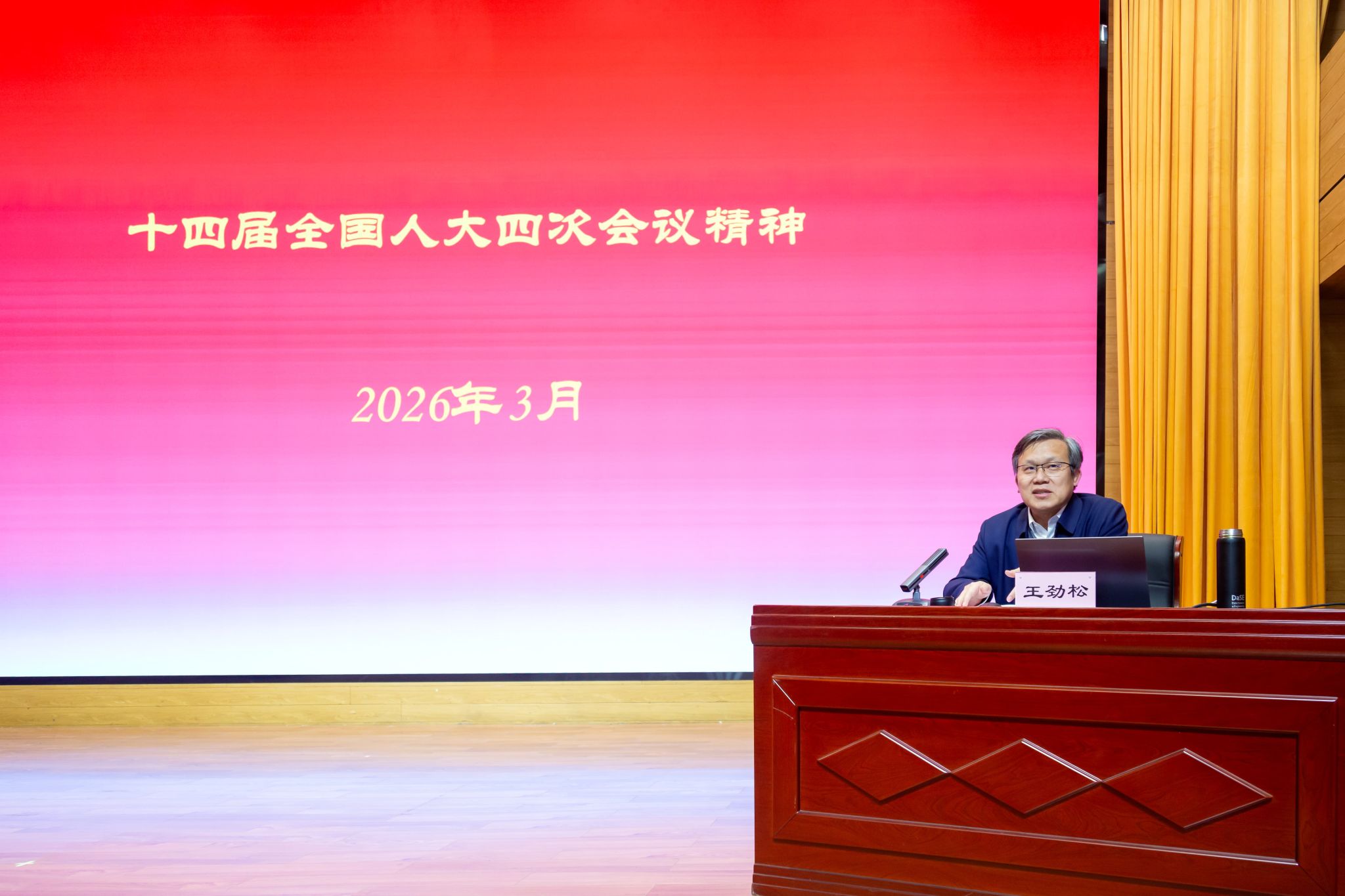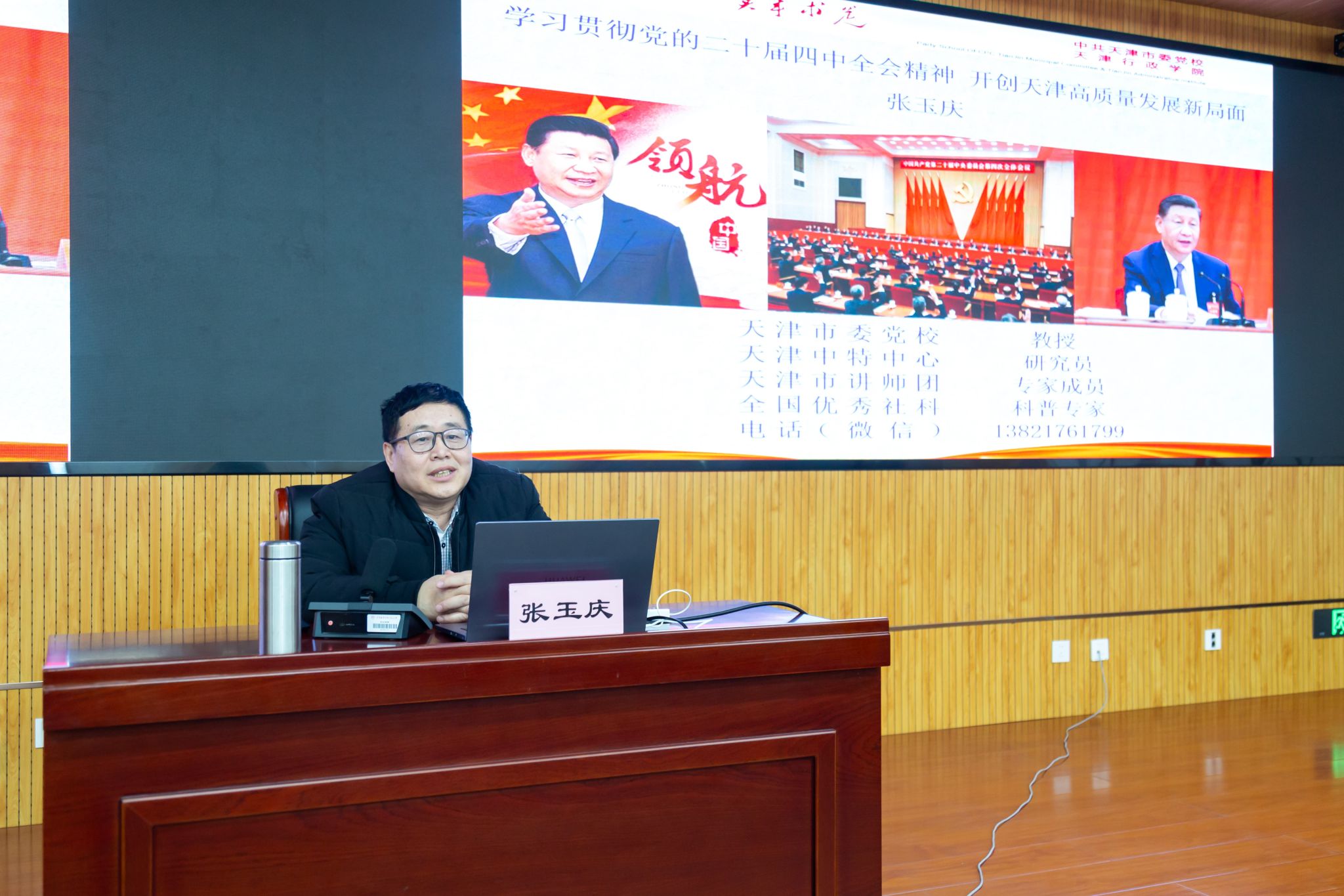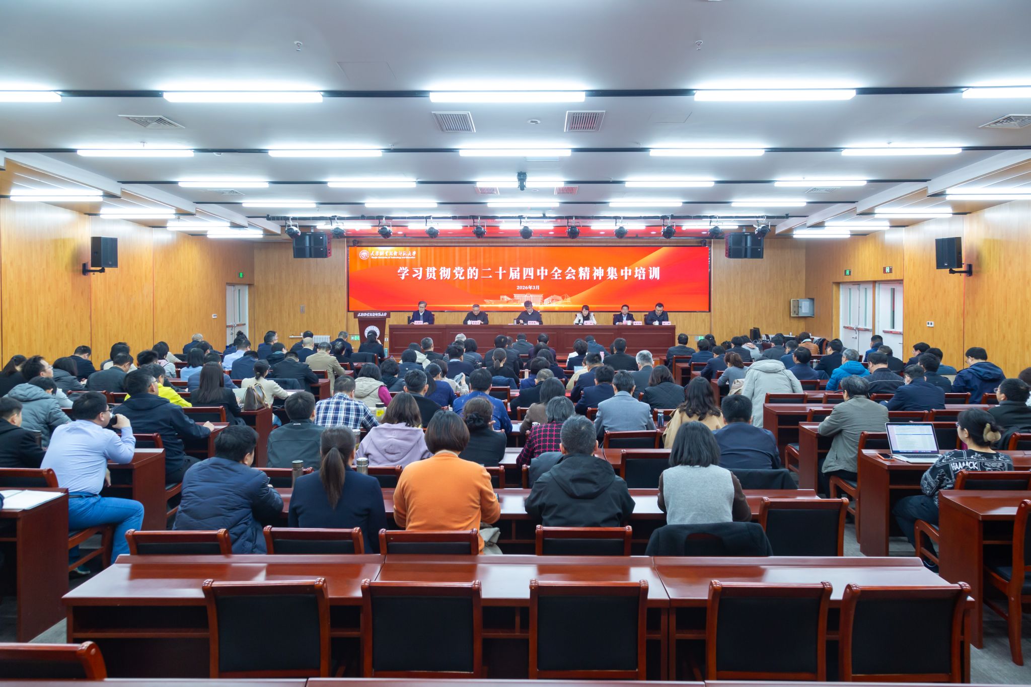 培训期间,学校邀请多位专家学者作专题辅导报告,构建“理论解读+政策阐释+实践分享”的立体化培训体系。全国人大代表、副校长王劲松作《传达全国两会精神 凝聚兴校奋进力量》专题讲座,系统解读2026年全国两会核心要义,结合学校实际深入阐释“十五五”规划开局、教育强国建设等重大部署,让参训干部深受启发、倍增干劲。天津市习近平新时代中国特色社会主义思想讲师团成员、市委党校教学督导组成员张玉庆教授作《学习贯彻党的二十届四中全会精神,开创天津高质量发展新局面》专题报告,从核心点、关注点、落脚点、着力点四个维度,系统解读全会精神、剖析政策信号、阐释宏观目标、明确发展任务,为精准把握全会精神提供有力指引。天津大学教务处副处长、博士生导师宋春风教授作《深化新工科迭代跃升,提升卓越工程人才培养质量》专题讲座,系统分享新工科建设的“天大方案”与实践经验,为学校推进人才培养模式改革、服务新质生产力发展提供重要借鉴。