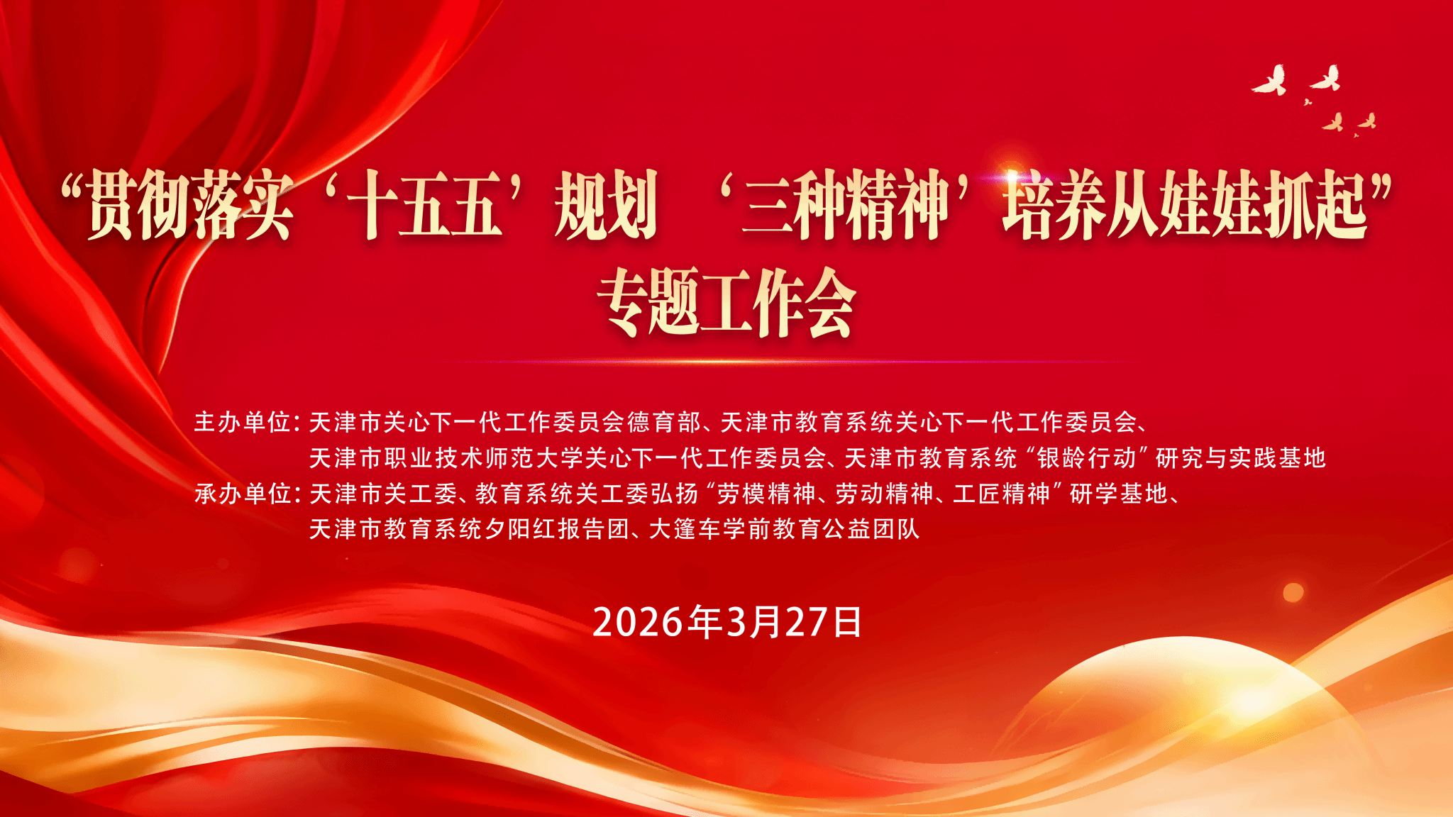 此次会议由天津市关心下一代工作委员会德育部、市教育系统关心下一代工作委员会、天津职业技术师范大学关心下一代工作委员会、天津市教育系统“银龄行动”研究与实践基地联合主办,天津市关工委、教育系统关工委弘扬“劳模精神、劳动精神、工匠精神”研学基地、天津市教育系统夕阳红报告团、大篷车学前教育公益团队共同承办。来自天津市关工委德育部、教育系统关工委、相关高校及幼儿园的负责同志、专家学者、教师代表等约200人齐聚一堂,紧扣儿童友好建设、未成年人思想道德教育、家校社协同育人机制构建等关键问题,立足“十五五”规划开局之年的时代要求,探索“三种精神”从小培育的有效路径。