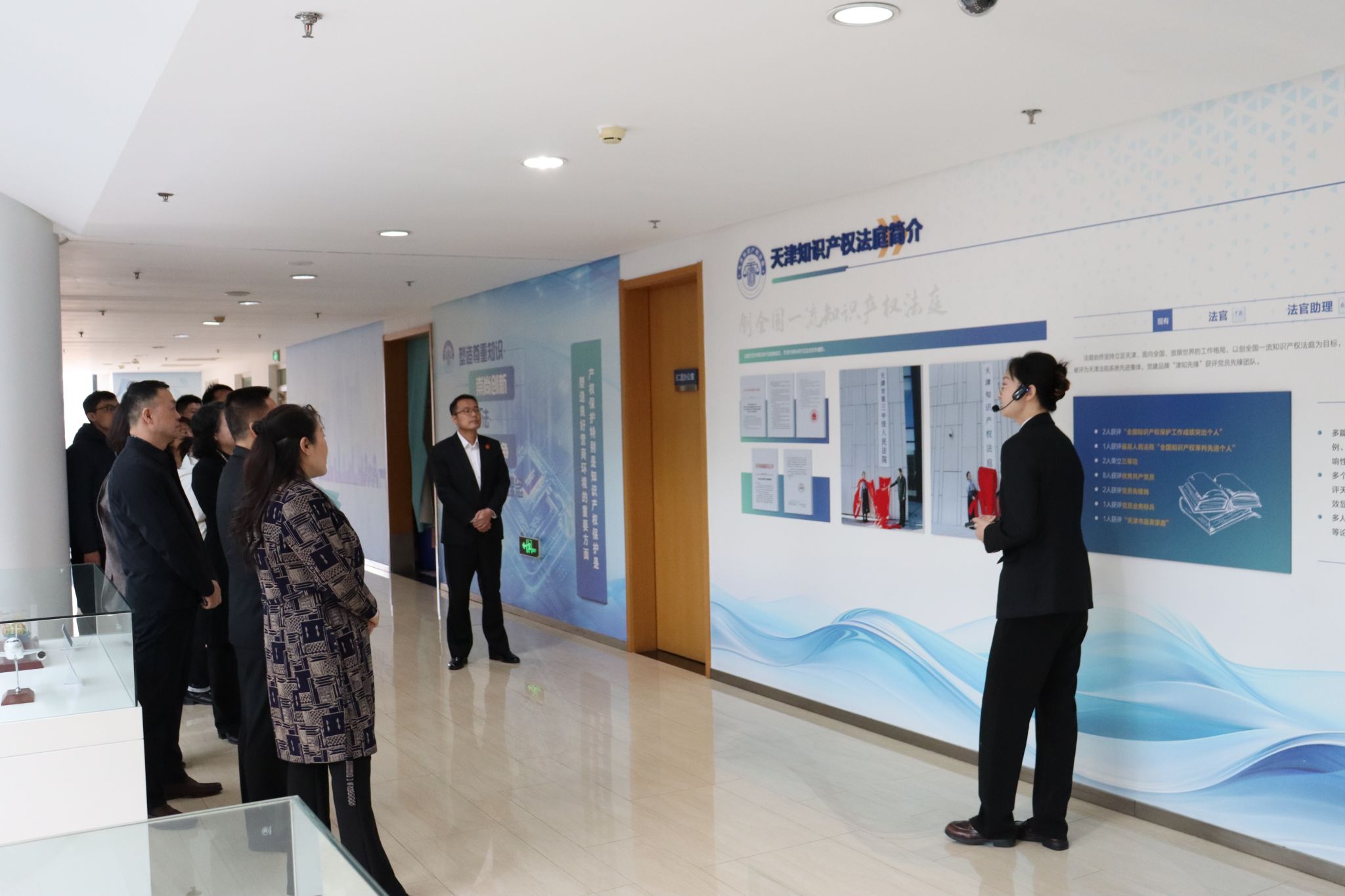 李靖一行首先参观了天津市第三中级人民法院知识产权文化展厅与廉洁文化阵地。在知识产权文化展厅,大家详细了解了天津市第三中级人民法院知识产权法庭作为全国32家独立挂牌的跨区域集中管辖技术类案件专门法庭的建设历程。展览生动展示了法庭依托专业化审判优势,在服务国家战略、保护创新成果方面所走出的一条具有天津特色的知识产权司法服务保障之路,党员们深切感受到司法护航科技创新的坚实力量。在以“法官清正、法院清廉、司法清明”为主题的廉洁文化阵地,分10个板块展示了以习近平总书记关于公正司法廉洁司法的重要论述为指导,推进新时代人民法院廉洁文化建设的生动实践,运用老一辈革命家的廉洁故事、古代廉洁代表人物的故事、法院系统先进典型人物事迹和反面典型案例等生动事例,党员们接受了一次深刻的精神洗礼,更加坚定了廉洁从政、廉洁用权的思想自觉,进一步筑牢了拒腐防变的思想道德防线。