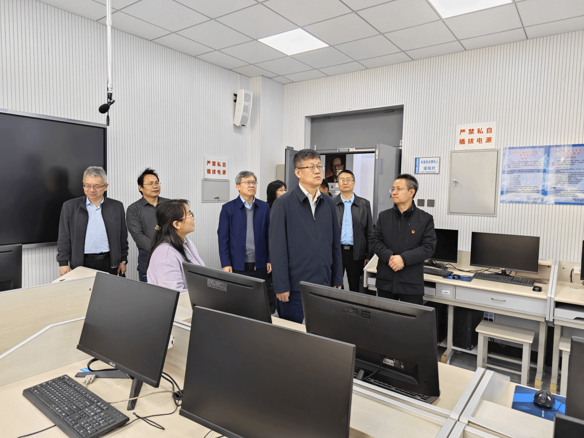 调研期间,郑清春一行实地走访华为ICT学院、国际VUE考点、大数据创新实验室、人工智能创新实验室等平台,察看设备运行与教学使用情况,详细了解产教融合、学科建设、科研成果转化及学生科技创新等工作,对学院发展成效给予充分肯定。