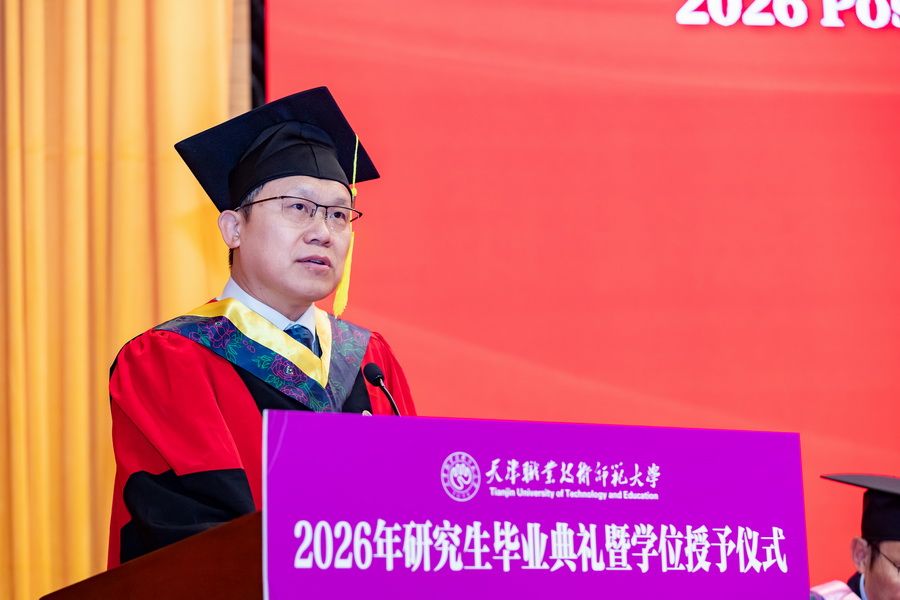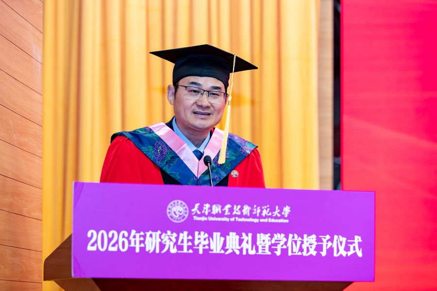 郑清春用“以技立身”“以教立心”“以创致远”深情寄语全体毕业研究生:一是以技立身,锻造大国工匠的硬核实力,希望大家永葆“择一事终一生”的专注,涵养“干一行钻一行”的精进,在技艺的巅峰不断攀登;二是以教立心,涵养立德树人的师者情怀,希望大家铭记“爱国、敬业、团结、创新”的校训精神,用扎实的学识启迪学生,用精湛的技能示范学生,用高尚的人格感染学生,成为学生成长路上的引路人和筑梦者;三是以创致远,激发敢为人先的澎湃动能,希望大家主动拥抱变革,打破思维定式,在技术迭代中捕捉机遇,在产业转型中开辟赛道,在交叉融合中孕育新机,以创新为桨、以实干为帆,在时代浪潮中奋楫前行。
