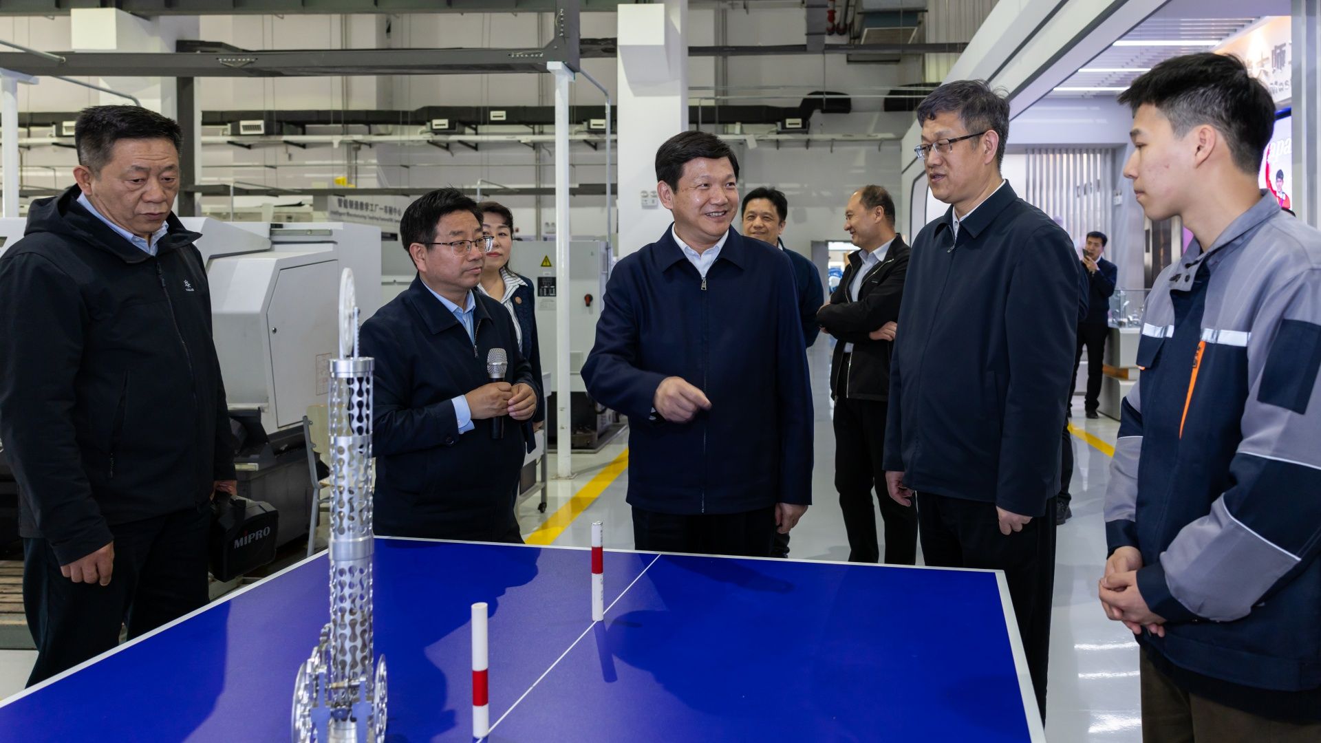 调研组先后考察中国-上海合作组织职业技术教育合作中心(以下简称“上合职教中心”)和学校工程实训中心。在上合职教中心,调研组听取职业教育国际交流合作、鲁班工坊建设及国际化技术技能人才培养情况介绍,观看专题宣传片,了解中心运行机制及工会参与支持的具体路径。在工程实训中心,调研组参观徐国胜大师工作室和实训教学区,重点了解学校技能型人才培养模式、师德师风建设举措以及劳模精神、劳动精神、工匠精神传承实践。