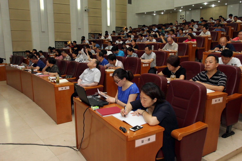7月12日,我校在图书馆二楼报告厅召开校、处两级理论学习中心组学习会。全体校领导、全体处级干部参加了会议。会议由校党委副书记、校长刘欣主持。