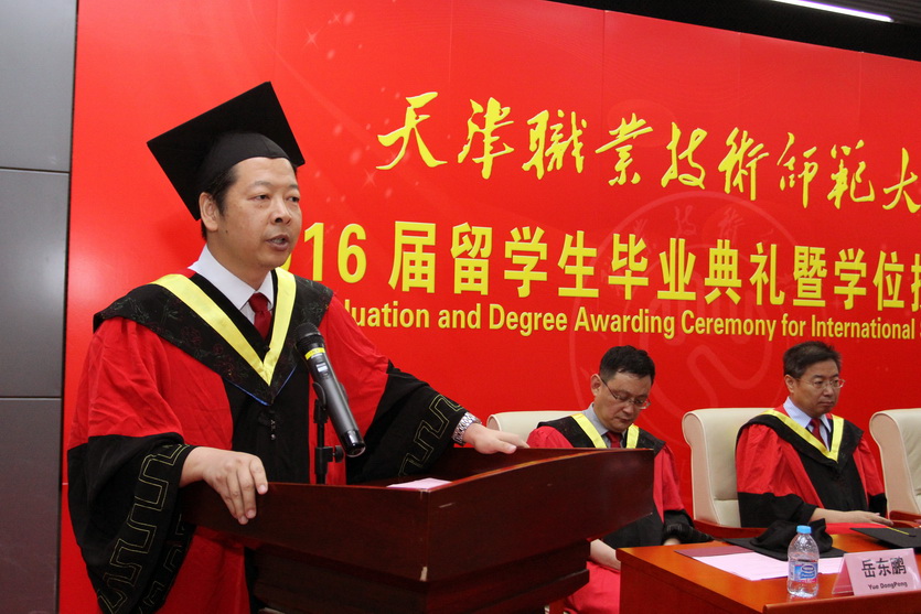 “同学们,回首过去的几年,你们立志成才、刻苦学习、‘动手动脑,全面发展’,在校园留下了辛勤的汗水、奋斗的足迹和激扬奋发的青春豪情。无论是在获取知识、砥砺人生的成长过程还是在感知中华文化、体验津味儿民俗的各类活动中,都收获良多。这些经历,都将成为惠及你们一生的宝贵财富。”副校长阎兵教授代表全校师生向各位毕业生表示热烈的祝贺,并寄语在未来的日子里无论身在世界何方,在学习和工作中都要继续发扬我校优良传统,继续保持虚心好学,求真务实的品质,回报母校和老师的培养。