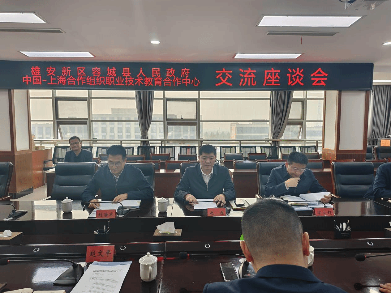 梁立超就双方联合开展职业教育人才培养、科学研究等合作意向进行进一步介绍。容城县职业技术教育中心党支部书记刘海军汇报容城县职业技术教育中心建设现状。与会人员就加强职业教育领域交流合作、推动上合职教中心建设成果落地等事宜进行了深入研讨。