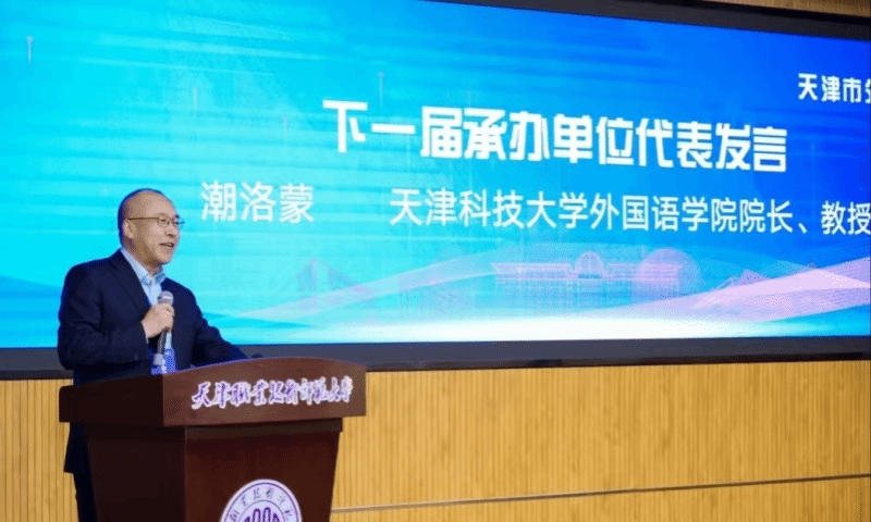 闭幕式由天津市外文学会秘书长、天津商业大学外国语学院院长黄乐平教授主持。中国民航大学张艳玲教授、天津交通职业学院教师冯铁妍和我校外国语学院副院长杨立学教授分别就本科院校教师分论坛、职业院校教师分论坛和研究生分论坛做了总结发言。天津科技大学外国语学院院长潮洛蒙代表下一届承办单位发言,他热情邀请兄弟院校各位专家学者明年相聚天津科技大学,共同探讨天津市外语学科发展方向。天津市外文学会副会长温秀颖致闭幕词,黄乐平宣读了学会理事增补名单。