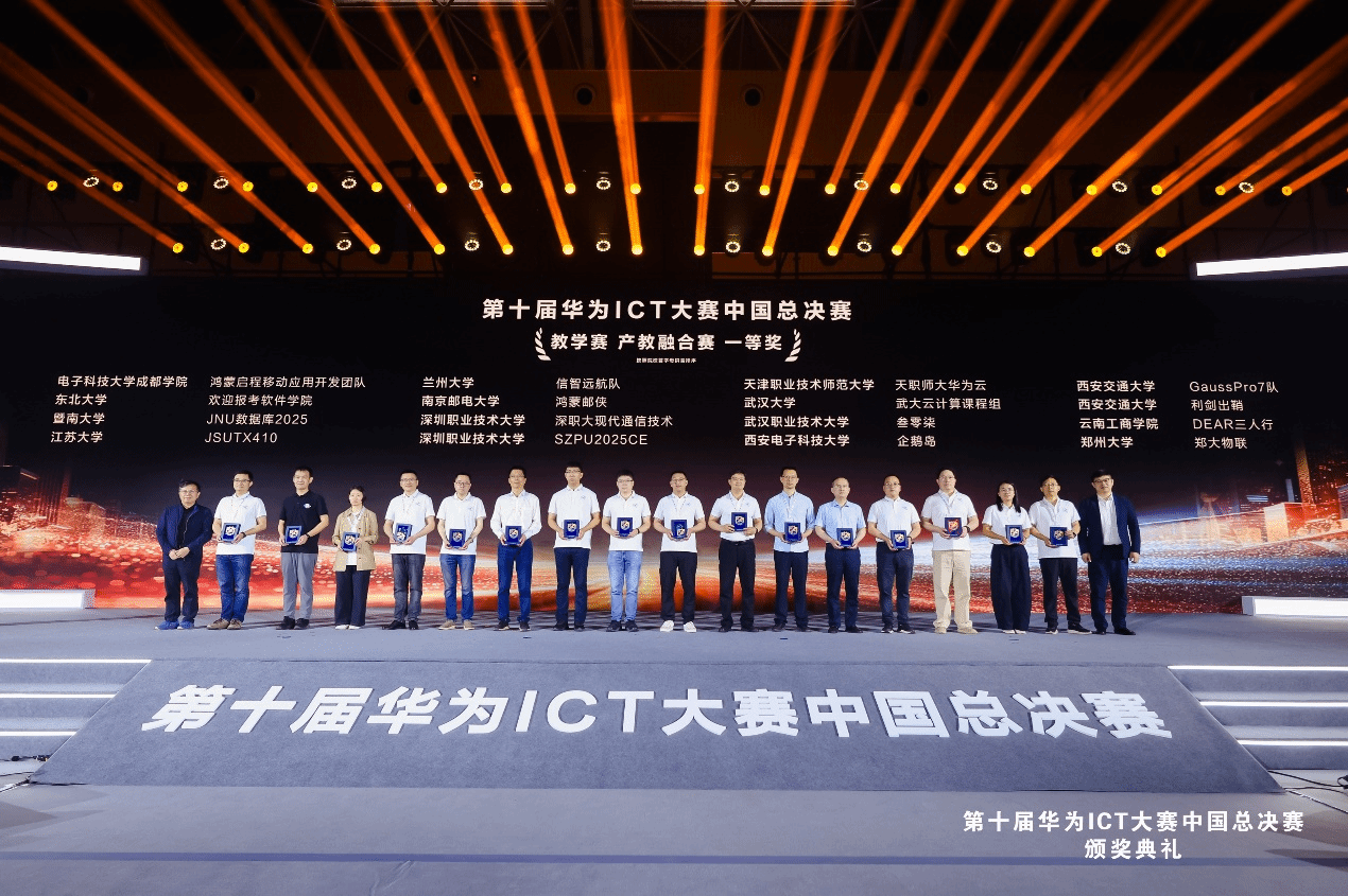 作为教育部“全国普通高校大学生竞赛排行榜”核心赛事,华为ICT大赛自2015年创办以来,已发展成为全球覆盖100余国、吸引超22万选手参与的科技盛会,并被联合国教科文组织全球技能学院授予“旗舰人才培育项目”殊荣。本届大赛在第九届基础上新增编程赛-仓颉赛项、精英赛,吸引了16万高校师生报名参赛,覆盖31个省份及直辖市的1400所高校,报名人数创历史新高。其中,教学赛为教师专属赛道,聚焦高校ICT专业教学改革与实践教学创新,旨在挖掘和推广产教融合背景下的优秀教学成果,全国仅16支队伍获评该赛道一等奖。实践赛为学生专属赛道,聚焦学生ICT专业实践能力与工程应用能力考核,重点检验学生对ICT技术的实际运用和团队协作能力。