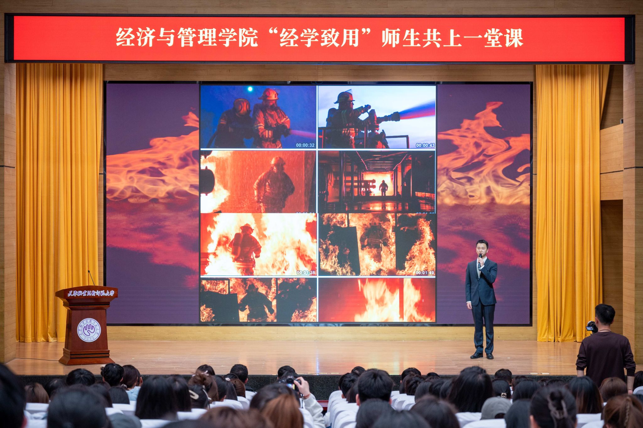 中国人民抗日战争纪念馆、平津战役纪念馆相关部门负责人、宣讲团成员,天津天狮学院数字经济管理学院师生代表,我校经济与管理学院领导班子、课程思政共研团队、师生代表等300余人参加活动。