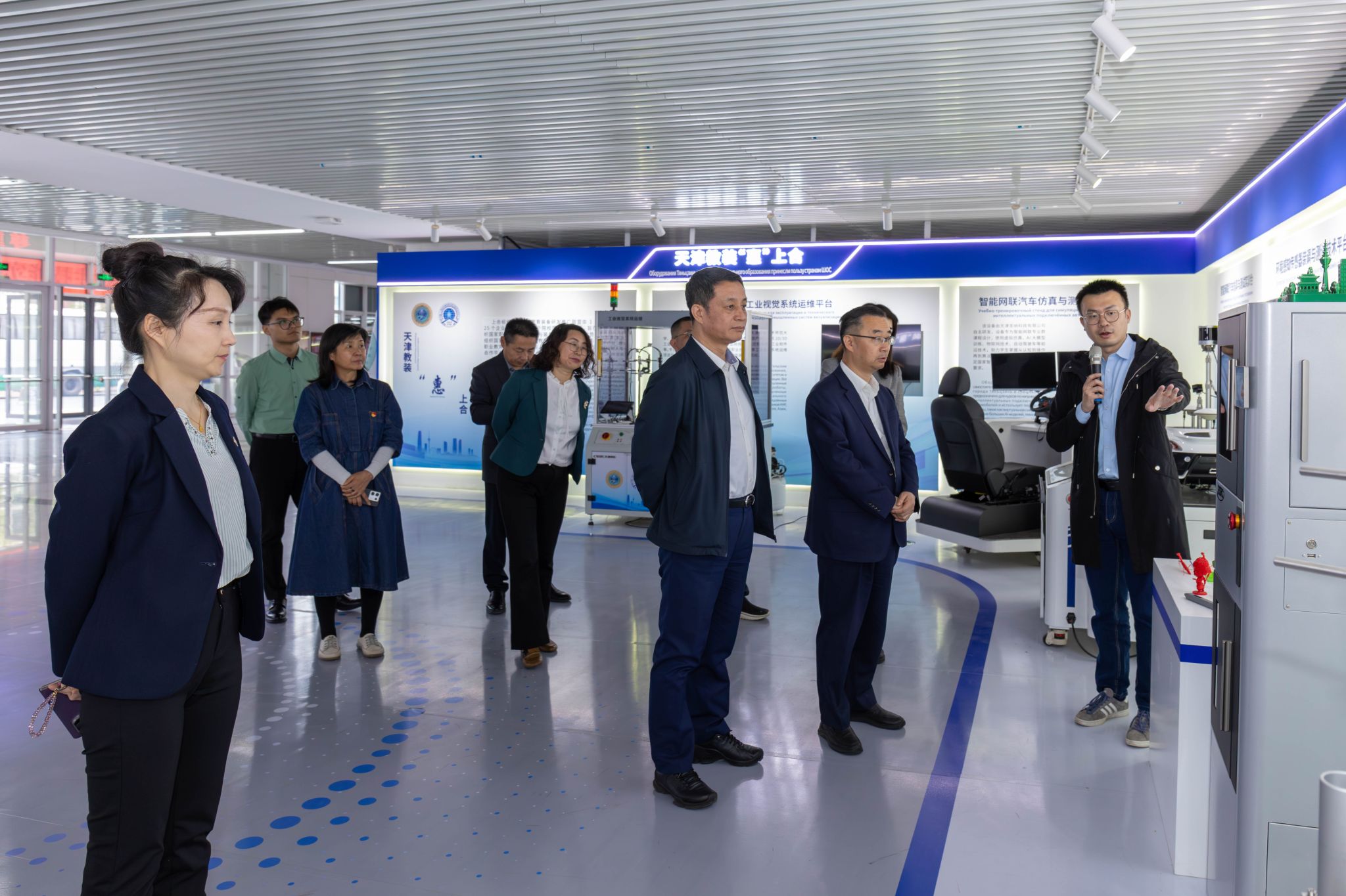 会前,嘉宾一行参观了中国—上海合作组织职业技术教育合作中心,深入了解学校在职教师资培养、科研创新、国际交流合作等方面取得的丰硕成果。
