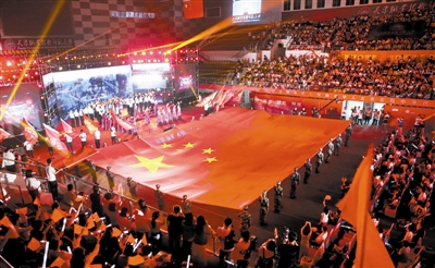 图为师生高举国旗合唱《我和我的祖国》,用歌声表达对中华人民共和国成立70周年的深深祝福。李杨文 张立摄