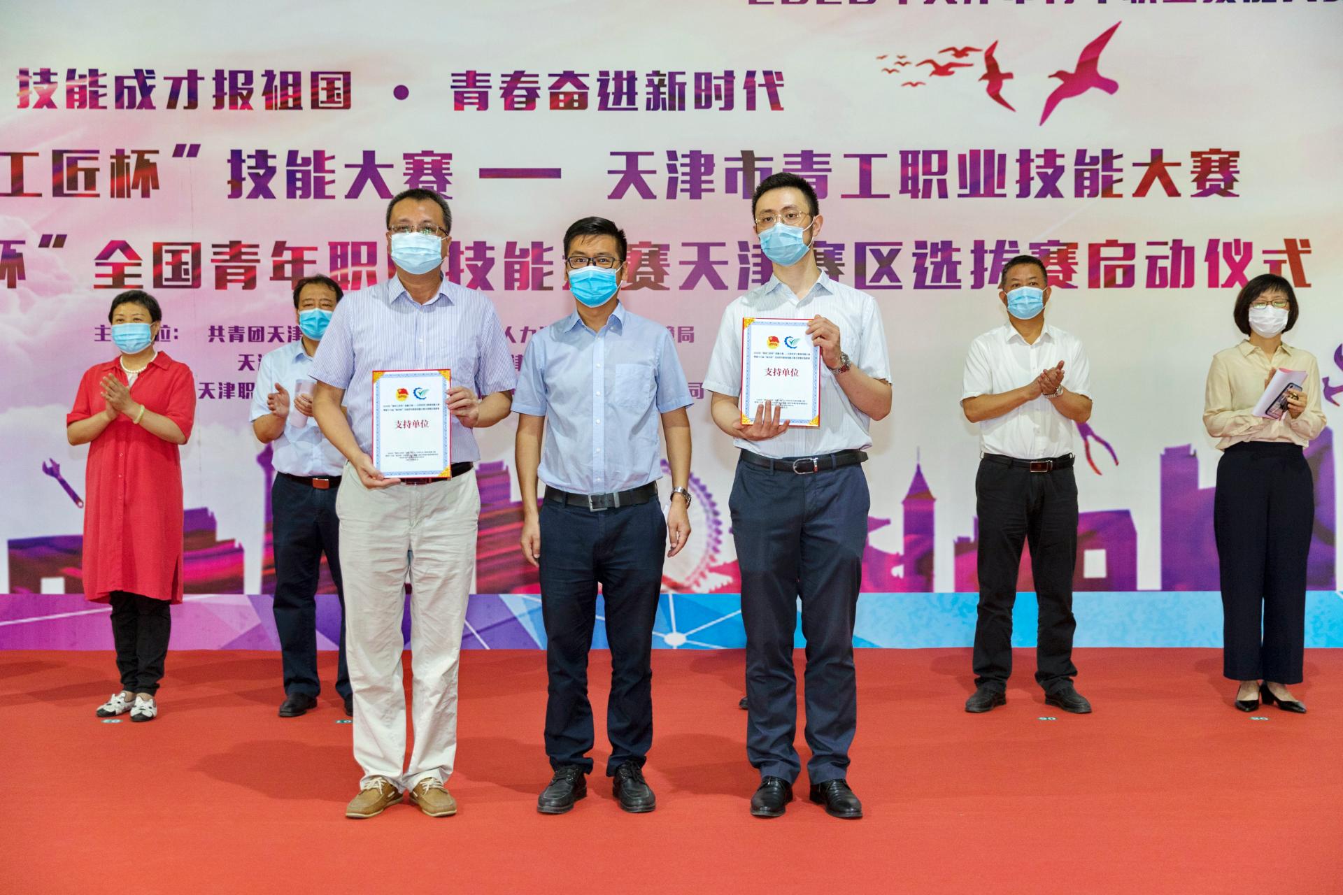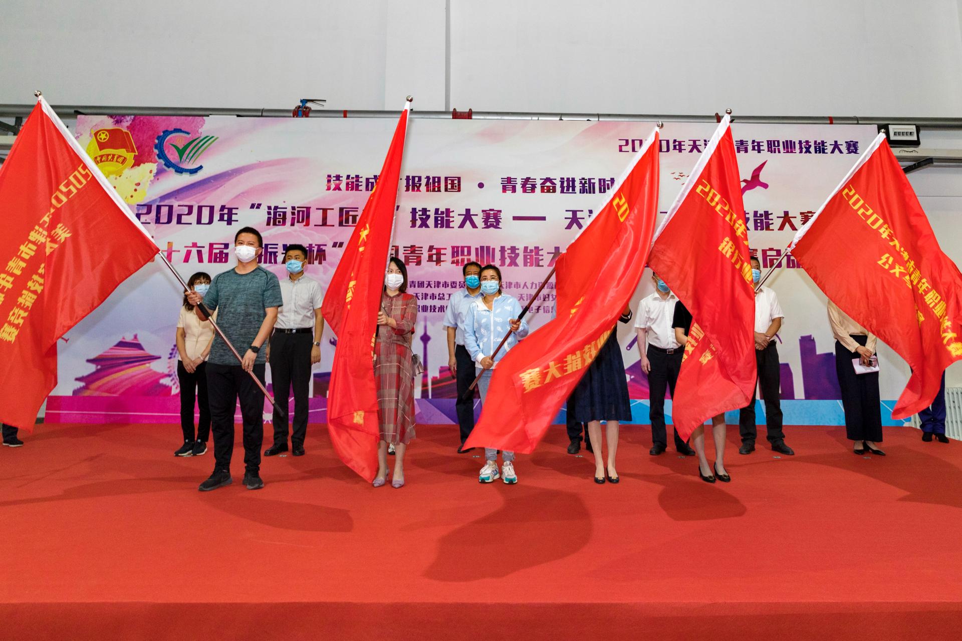 启动仪式上,来自天津中德应用技术大学的翟世宏代表参赛选手发言,我校工程实训中心教师李杰代表大赛裁判员宣誓,百利机械装备集团天津市机电工艺技师学院薛二振代表往届获奖选手发言。出席领导向我校和中环电子信息集团有限公司等承办单位授牌,并为美发美容行业协会团委、金融团工委、市级机关团工委、快递行业协会团委、市卫生健康委团委等2020年天津青年职业技能大赛承办单位授旗。