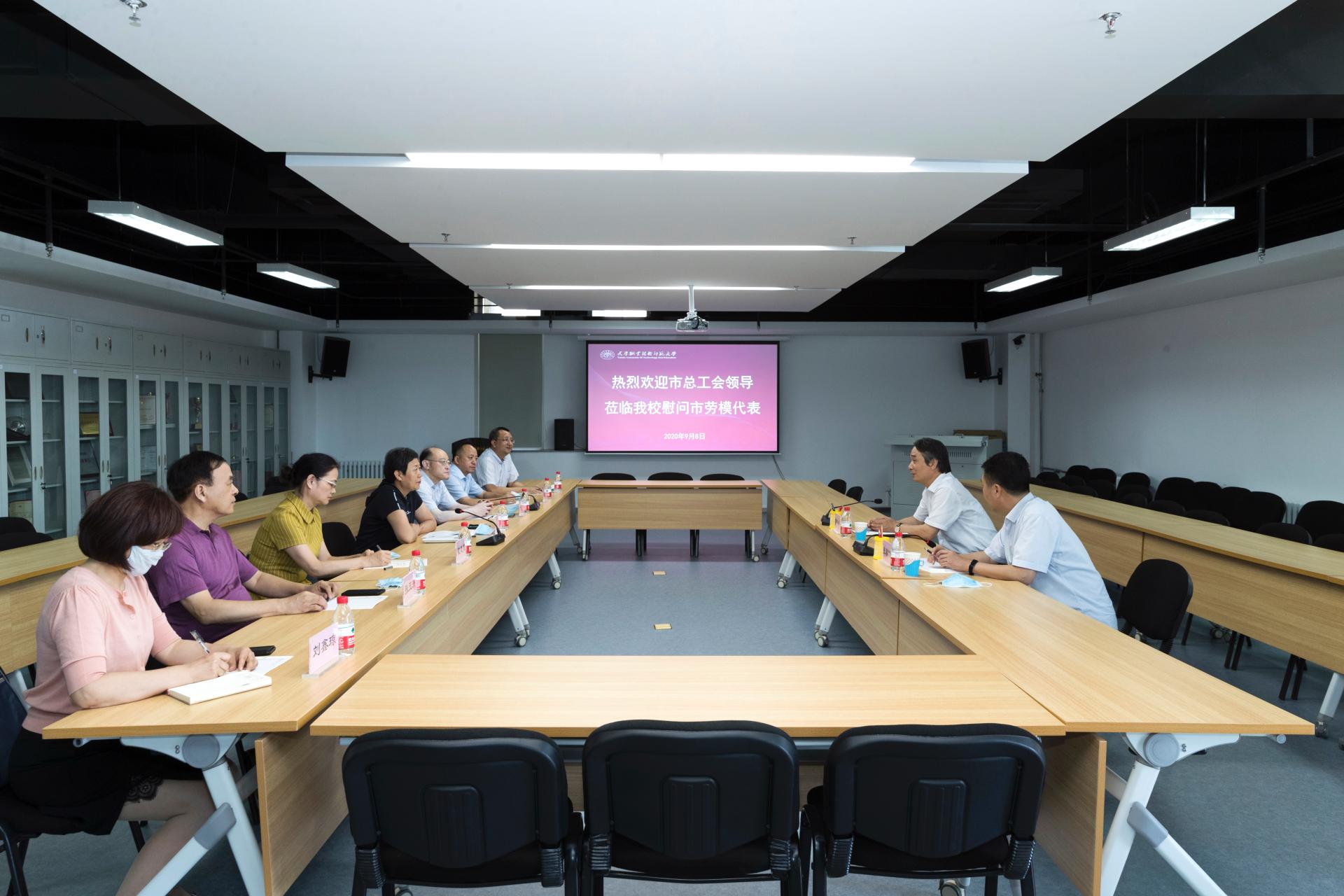 本网讯【通讯员 韩德新】在第36个教师节来临之际,为进一步弘扬劳模精神,9月8日下午,天津市总工会党组成员、副主席葛英秋、市教育工会副主席张家翔一行专程来到学校,看望慰问天津市劳动模范、工程实训中心、世界技能大赛中国(天津)研究中心主任徐国胜,并向全体教职工送上节日的祝福和问候。校党委书记张金刚,校长刘欣,校党委副书记、工会主席马雷会见了葛英秋副主席。