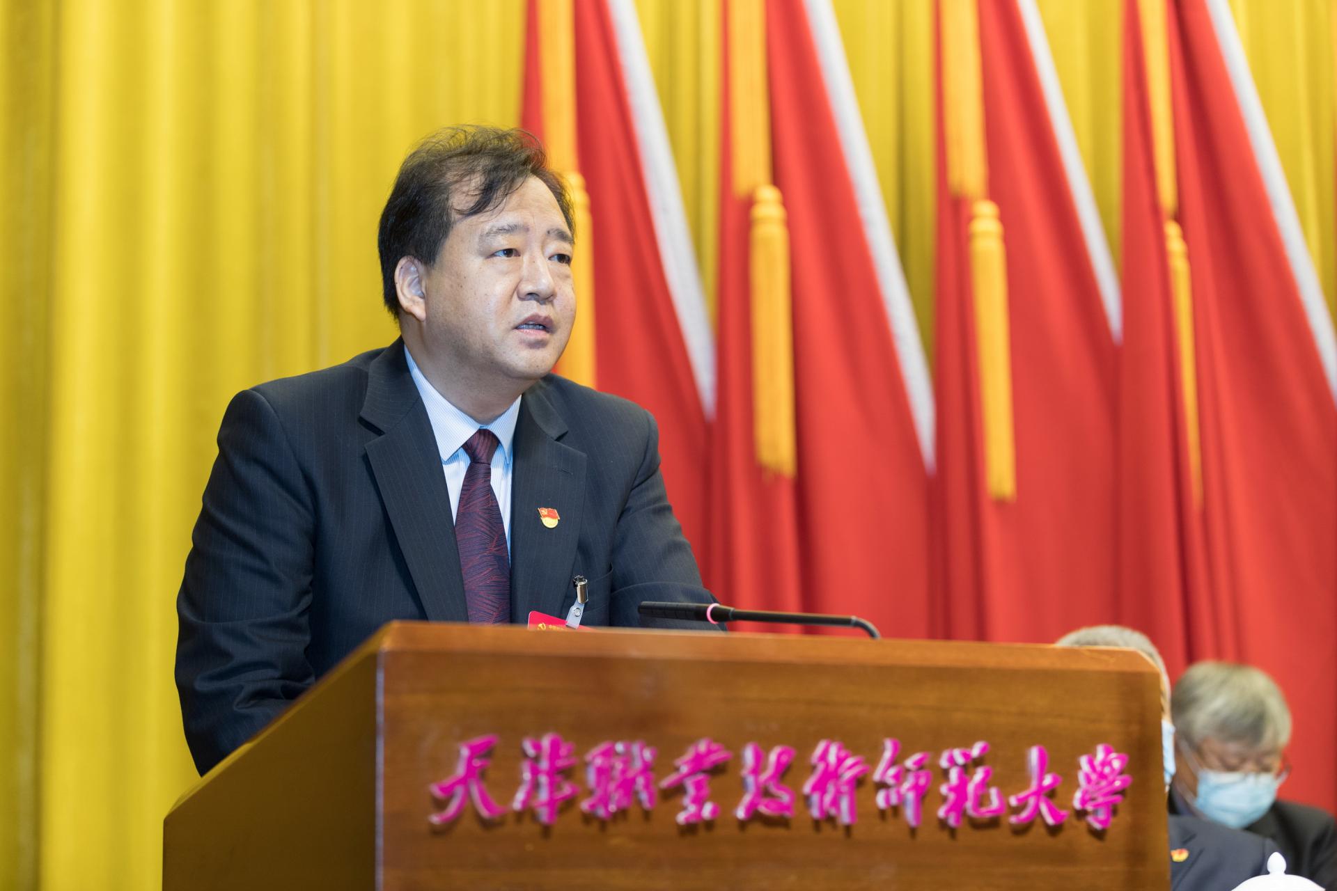 张金刚指出,第一次党代会以来,学校党委坚持社会主义办学方向,全面贯彻党的教育方针,深入学习贯彻党的十八大、十九大精神,党的领导和党的建设不断加强,学校事业高质量的内涵发展不断推进。全校师生把习近平总书记、李克强总理、孙春兰副总理等党和国家领导人的关心关怀转化为强大的政治动力、精神动力、工作动力、学习动力,全方位提升办学治校水平。在教育部、市委、市政府、市教育两委的正确领导和关心支持下,学校党委团结带领全校党员和师生员工,抢抓机遇、深化改革、迎难而上、顺势而为,为学校事业发展奠定了更加坚实的基础。一是旗帜鲜明讲政治,党的领导全面加强;二是思政攻坚深入推进,育师铸魂成绩斐然;三是教学改革持续深化,培养质量不断提升;四是学科建设快速发展,科技创新成效显著;五是社会服务扎实推进,服务格局持续扩大;六是交流合作不断拓展,国际化水平显著提升;七是人才队伍引育并举,集聚效应日渐凸显;八是治理能力显著提高,师生幸福感不断增强;九是党的建设质量全面提高,全面从严治党向纵深发展。为学校事业发展奠定了更加坚实的基础。