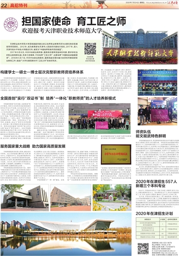 《天津日报》高招特刊:担国家使命 育工匠之师