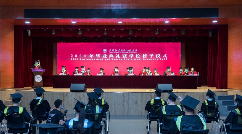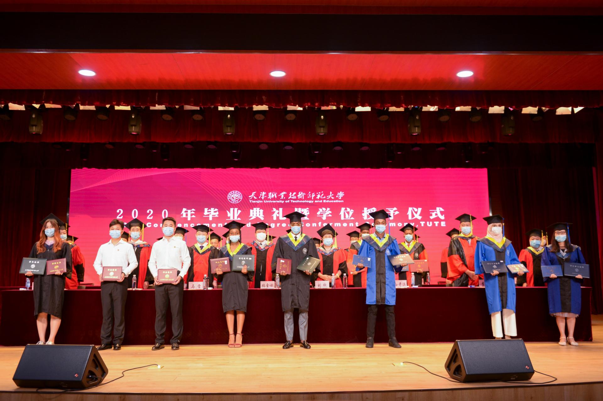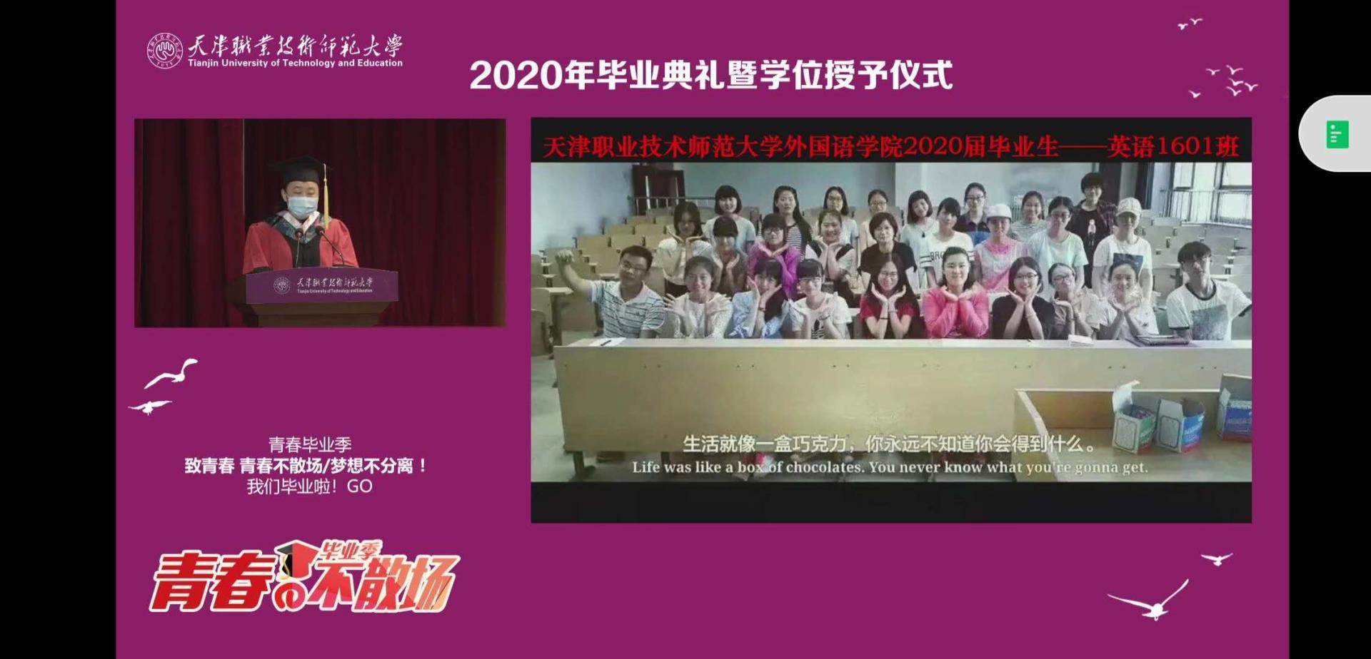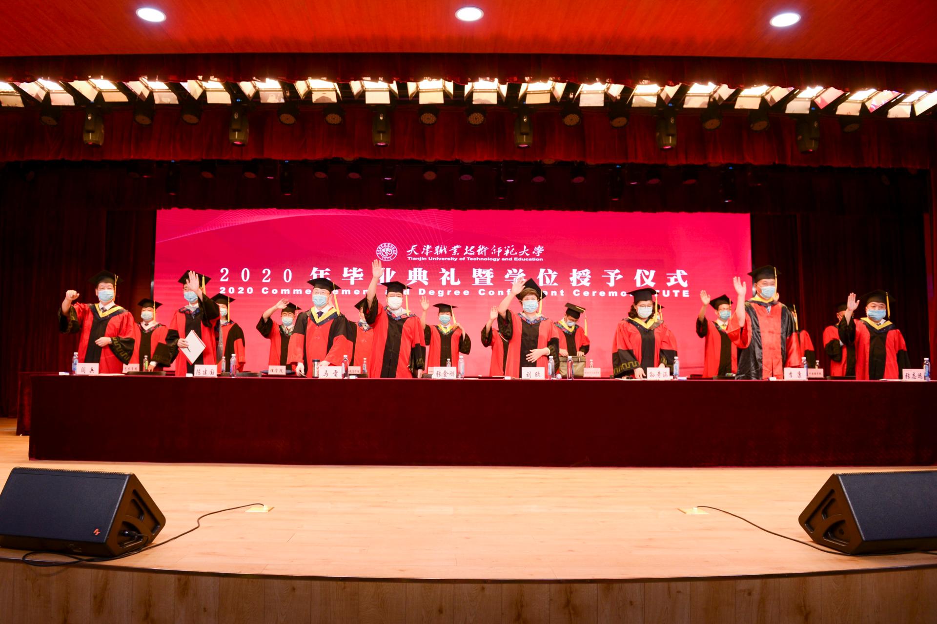本网讯【通讯员 黄晨】 6月22日,天津职业技术师范大学2020年4756名博士、硕士、本科、高职毕业生、留学生及家长朋友通过线上线下互动,共聚“云典礼”,共享荣耀时刻。全体校领导出席典礼。各院部主要负责人、毕业生代表参加现场活动。毕业典礼与学位授予仪式分别由校党委副书记马雷、副校长孙奇涵主持。