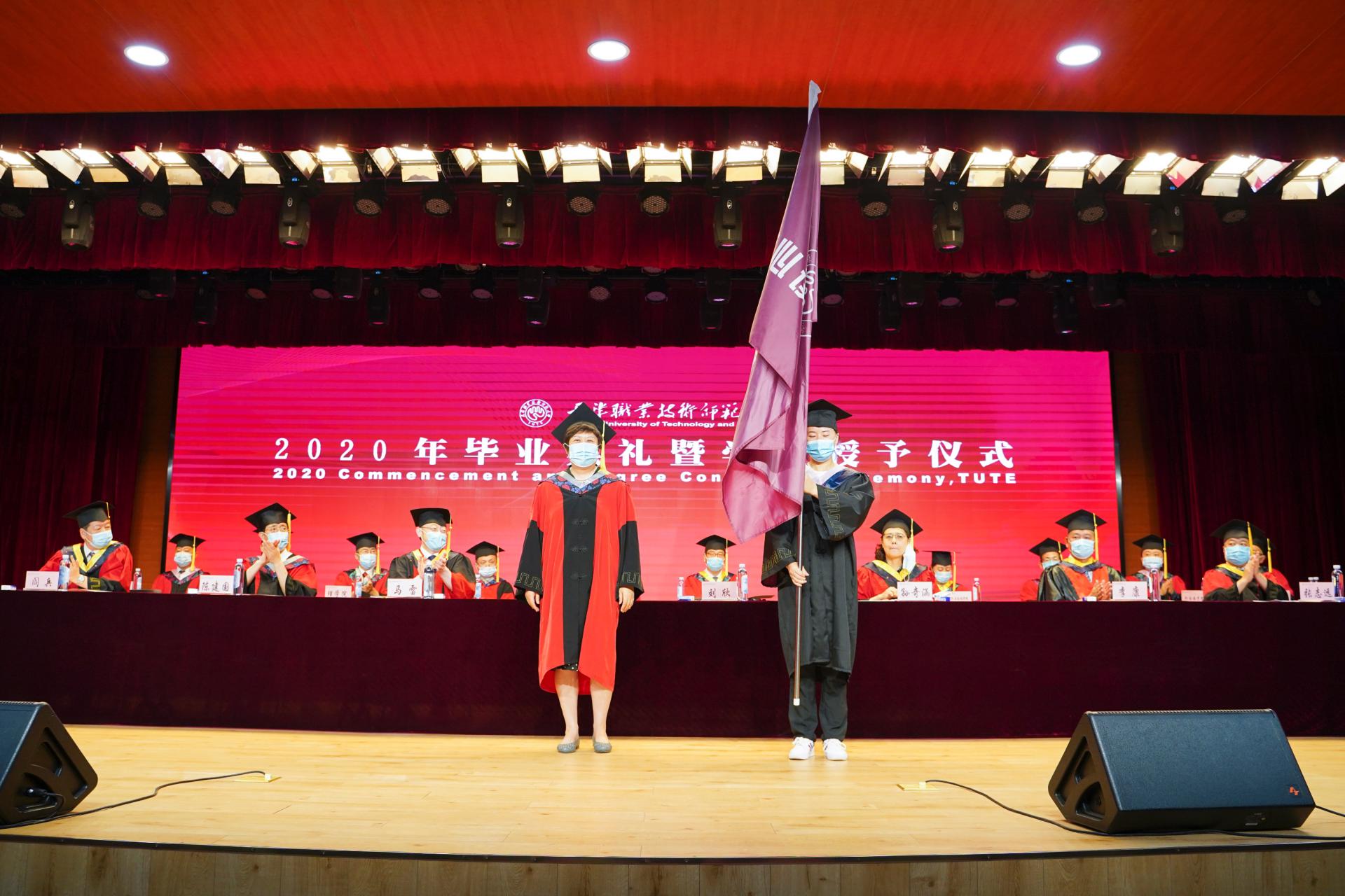 毕业典礼后举行了学位授予仪式。11个学院(部)主要负责人宣读2020届毕业生名单,并同步播放了同学们在大学生活期间的照片。校领导与各学院(部)主要负责人分别为现场毕业生授予学位、拨穗正冠,颁发毕业证书、学位证书。