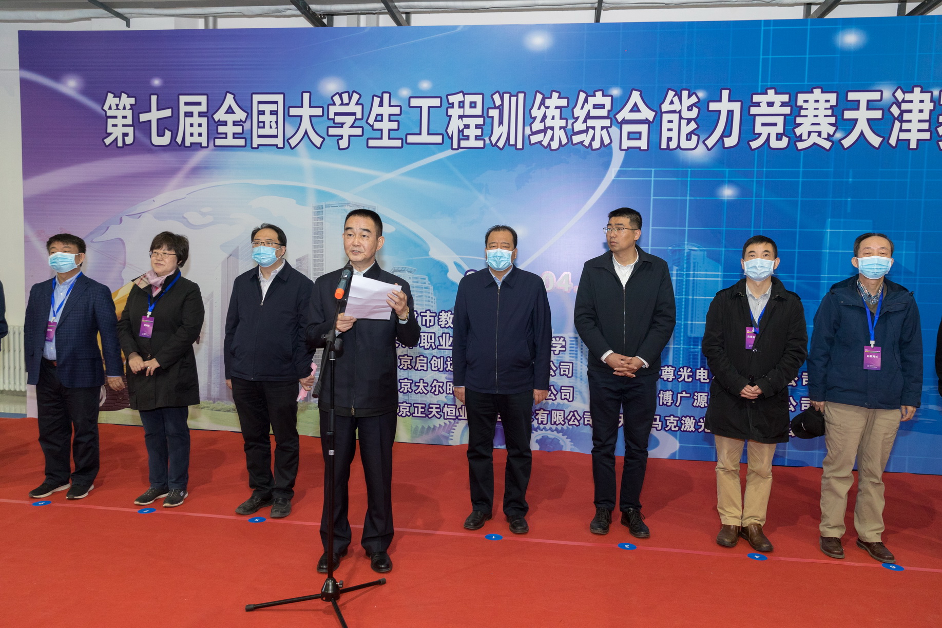天津市教育委员会高教处副处长刘冰、全国大学生工程训练综合能力竞赛巡视员王杰、我校党委书记张金刚、副校长吕景泉以及来自天津各高校的嘉宾、裁判、参赛单位指导教师和学生代表共300余人参加了开幕式。开幕式由我校工程实训中心党总支张玉洲书记主持。