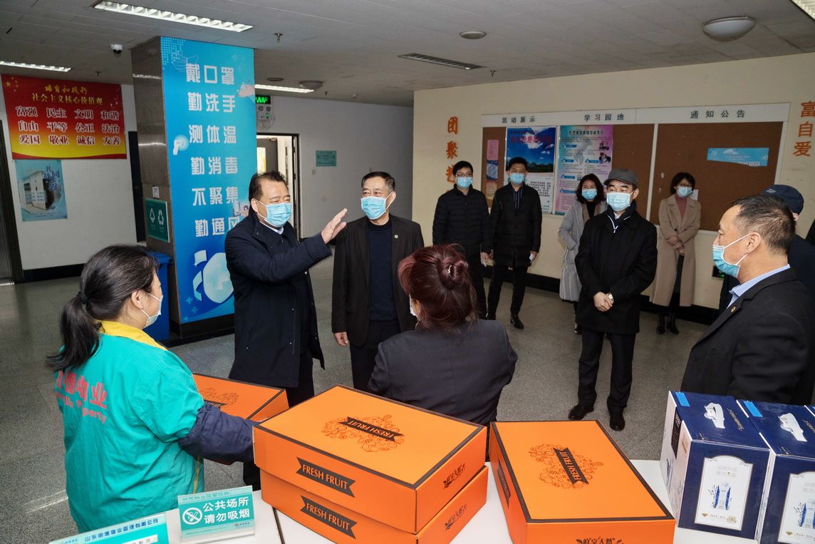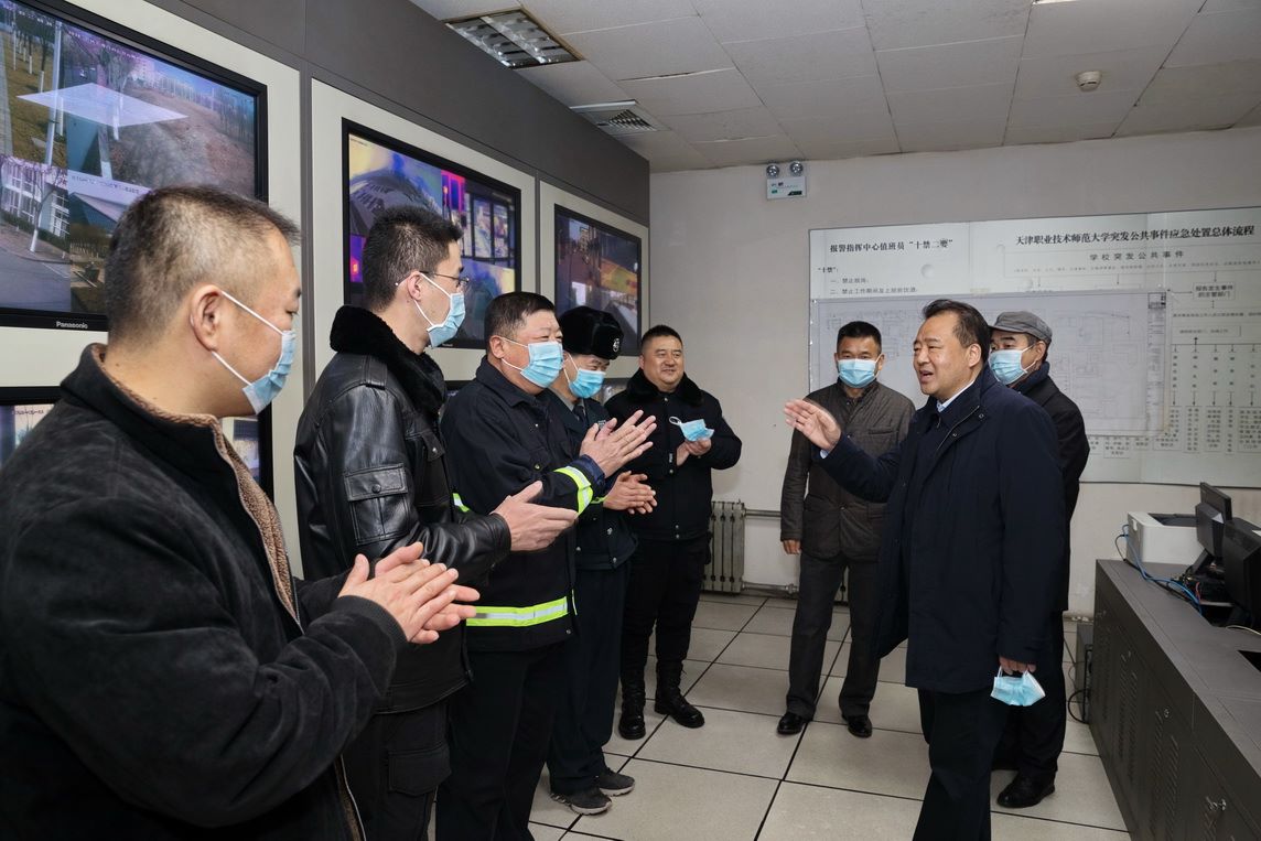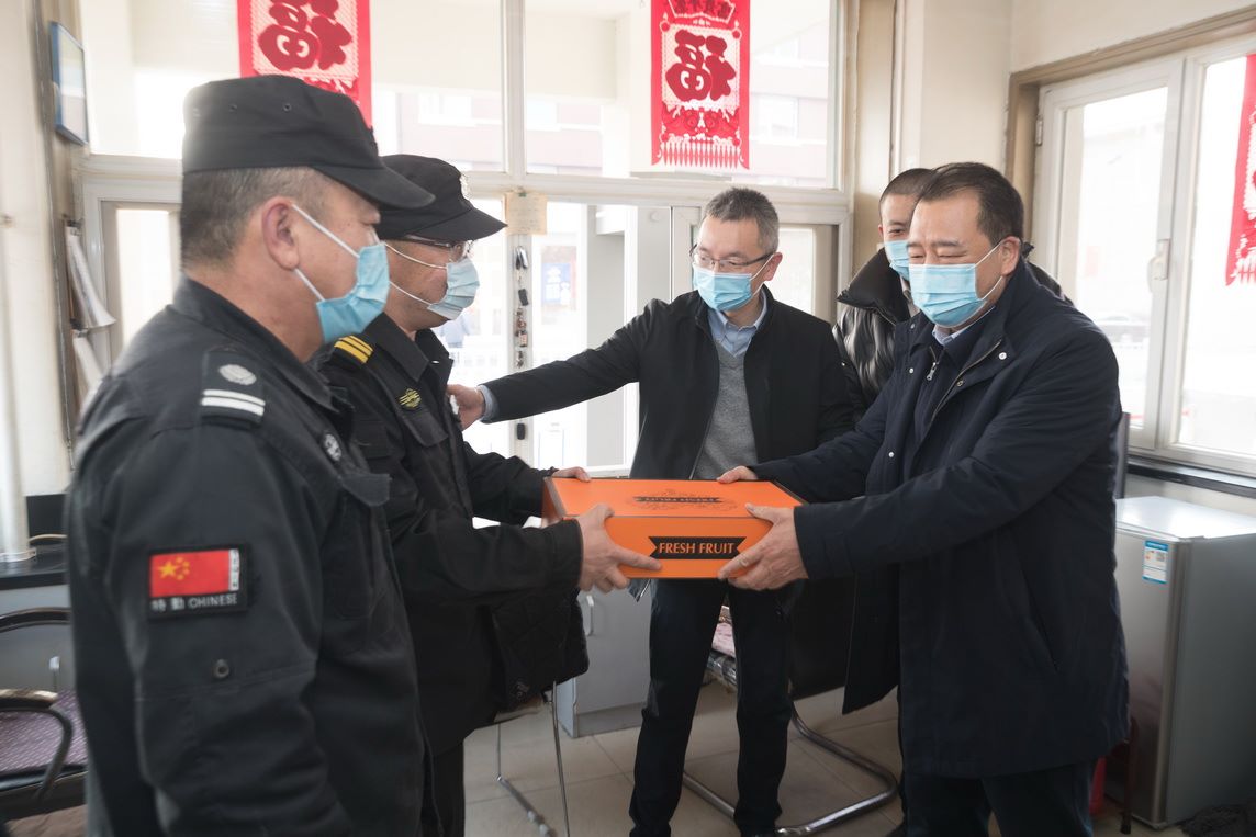 张金刚一行先后来到东、西校区门卫、保安室、监控室、变电站、后勤处维修科、运输中心、第五餐厅、学生公寓、留学生公寓楼、高校供热服务中心、附属技校值班室等10余处场所,看望慰问坚守在岗位一线的干部职工、安保人员与值班人员,代表学校送去慰问品,并通过他们向所有假期和春节期间坚守工作岗位的教职工及家属,致以美好的新春祝福和崇高敬意。