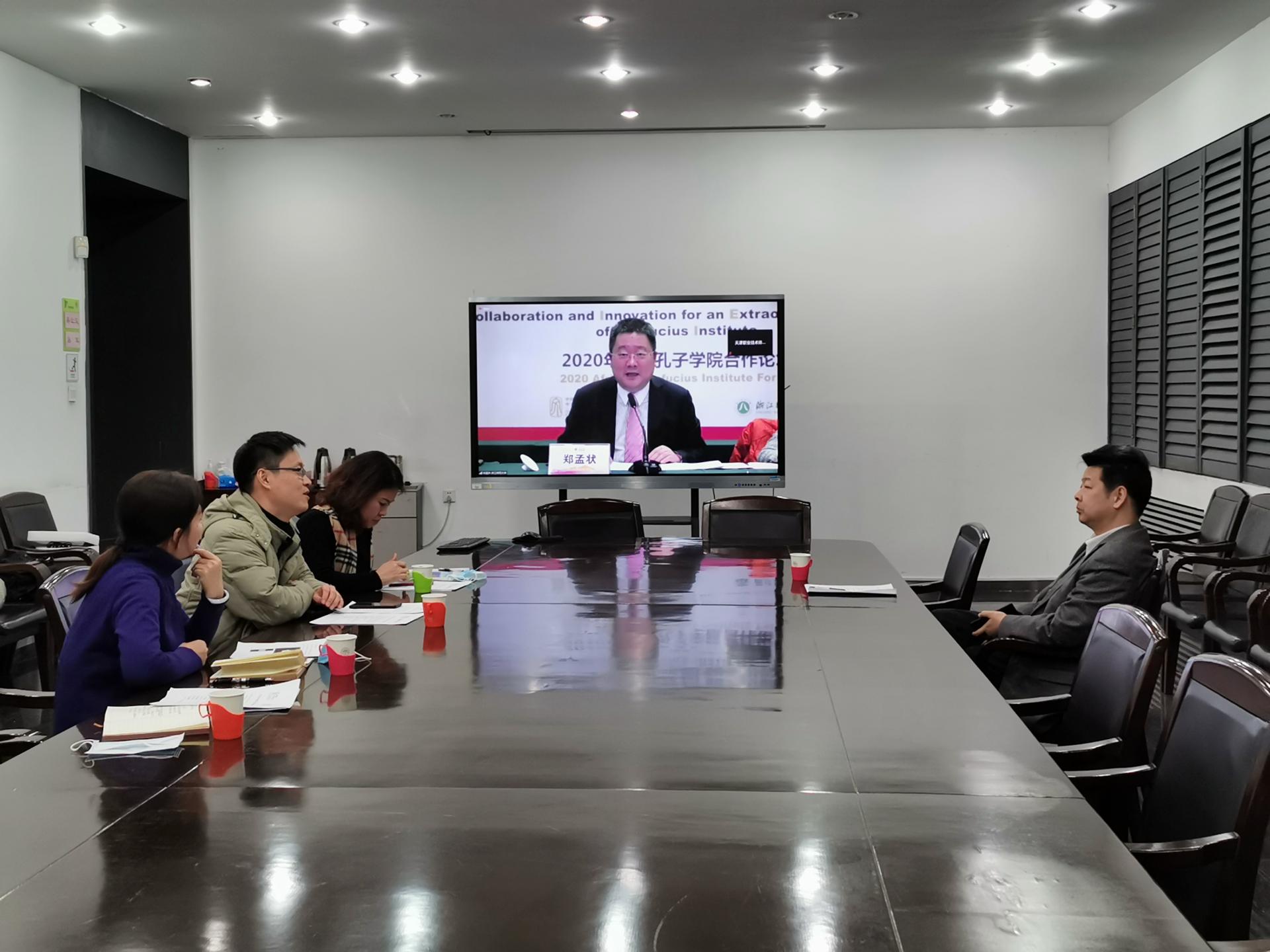本网讯【通讯员 李聪】12月15日至18日,由中国国际中文教育基金会与北京语言大学、浙江师范大学、对外经济贸易大学、华东师范大学等四所中方合作高校联合举办,以“协同创新、共谋孔子学院新发展”为主题的2020年孔子学院合作论坛顺利举行。校党委书记张金刚、副校长阎兵出席非洲、欧洲孔子学院合作论坛线上视频会议。