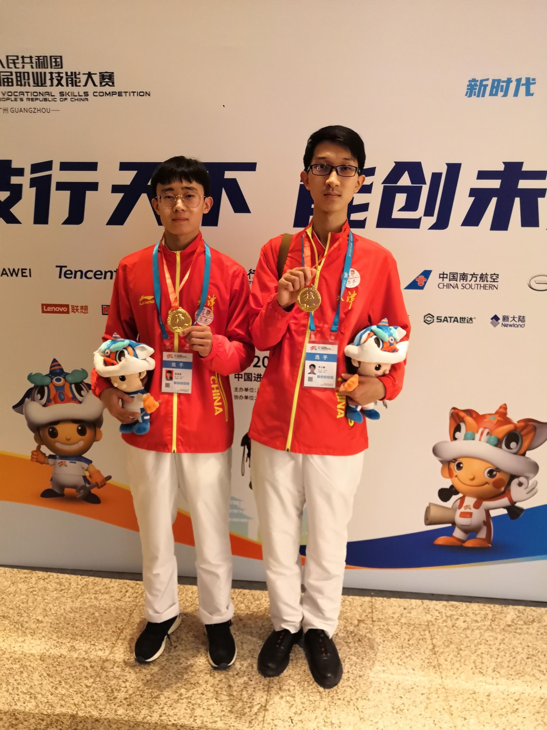附属高级技校毕业生叶林华、黄焕昌获得机电一体化项目第十名,荣获优胜奖。