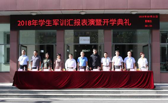 本网讯(通讯员 邢维莹)9月21日,附属高级技校举行2018年学生军训汇报表演暨开学典礼。北辰区津彩青少年素质教育服务中心主任庞超,附属高级技校常务副校长吴远志,副校长易贵平、鲍强、姚丽华,相关部门负责人,承训教官,各年级辅导员及班主任参加。