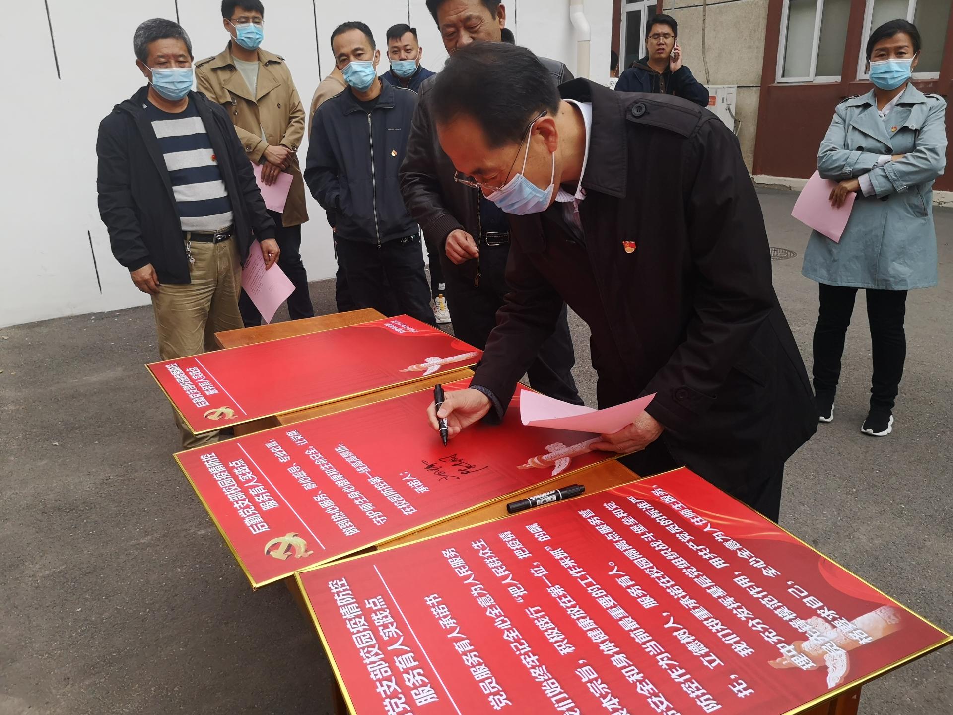 大家在党旗下郑重宣誓,并在服务承诺书上签名,承诺以实际行动践行习近平总书记“把人民群众生命安全和身体健康放在第一位,把疫情防控作为当前最重要的工作来抓”的重要指示精神,坚持立德树人,践行服务育人,切实做到守土有责、守土担责、守土尽责,全力守护师生健康,让党旗在校园防控第一线高高飘扬。