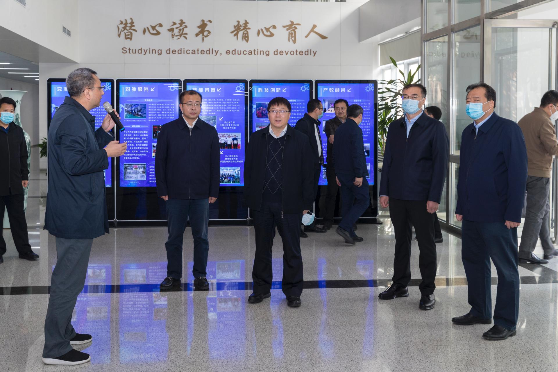 工程实训中心主任、世界技能大赛中国(天津)研究中心主任徐国胜对工程实训中心数控加工中心、数控车实训室、三坐标精密测量室、数字化教学工厂和大师工作室等进行了详细的介绍。