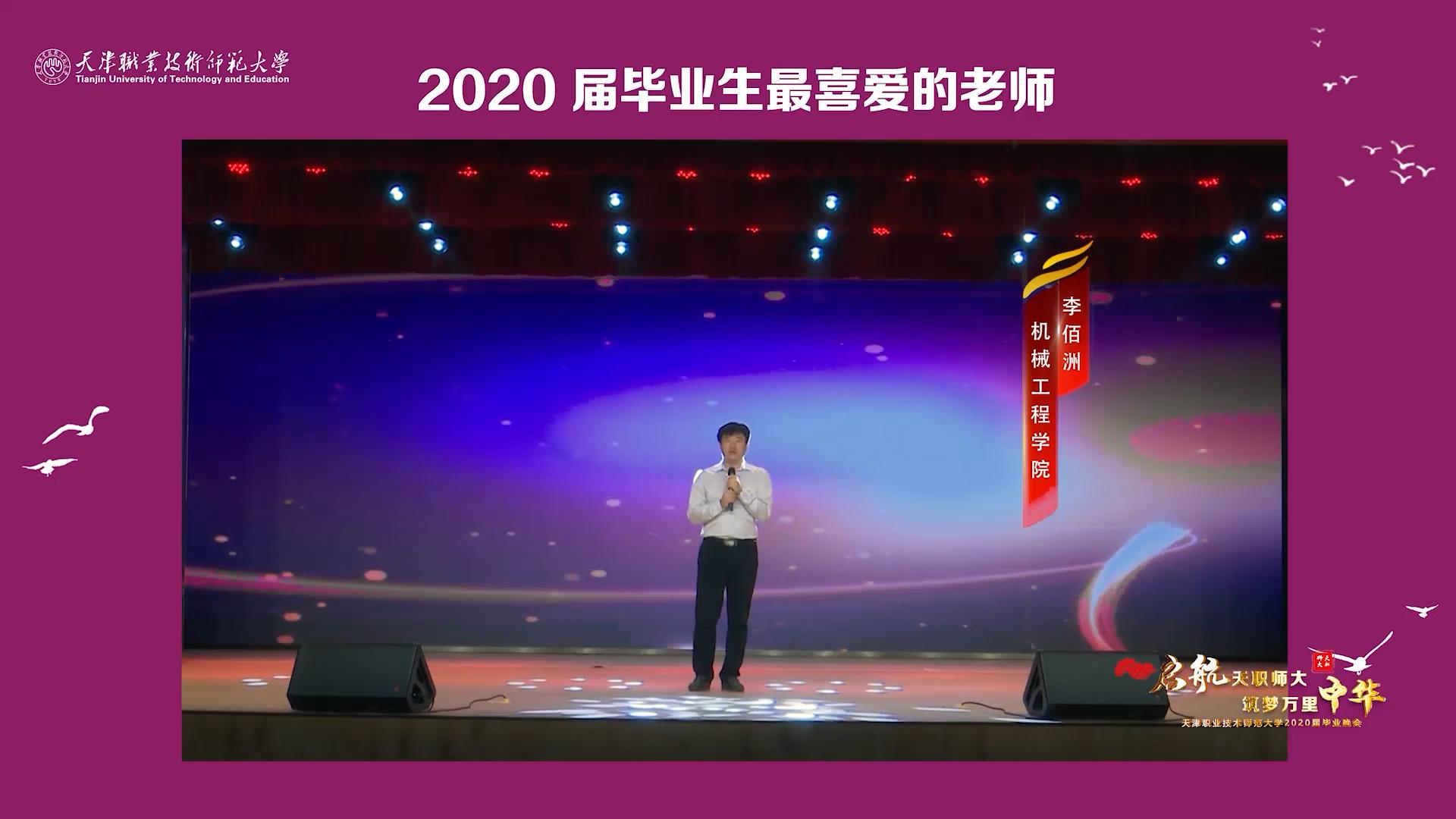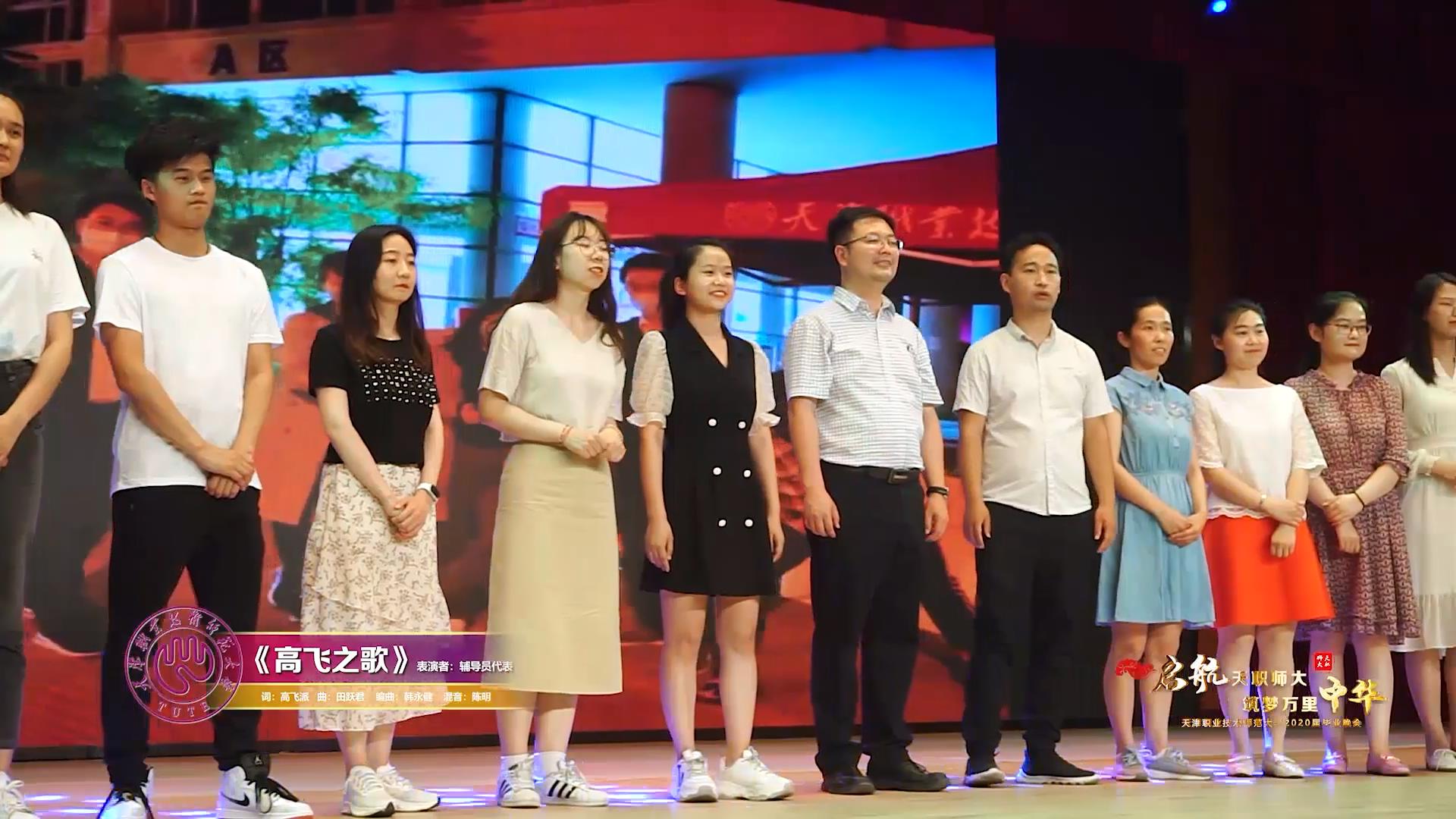 晚会上,获得“2020届毕业生最喜爱的老师”荣誉的13名教师为本届毕业生送上真心的勉励与祝福;曾经与毕业生朝夕相伴的辅导员代表用一首《高飞之歌》,祝愿大家在高飞的路上收获幸福、收获荣光。