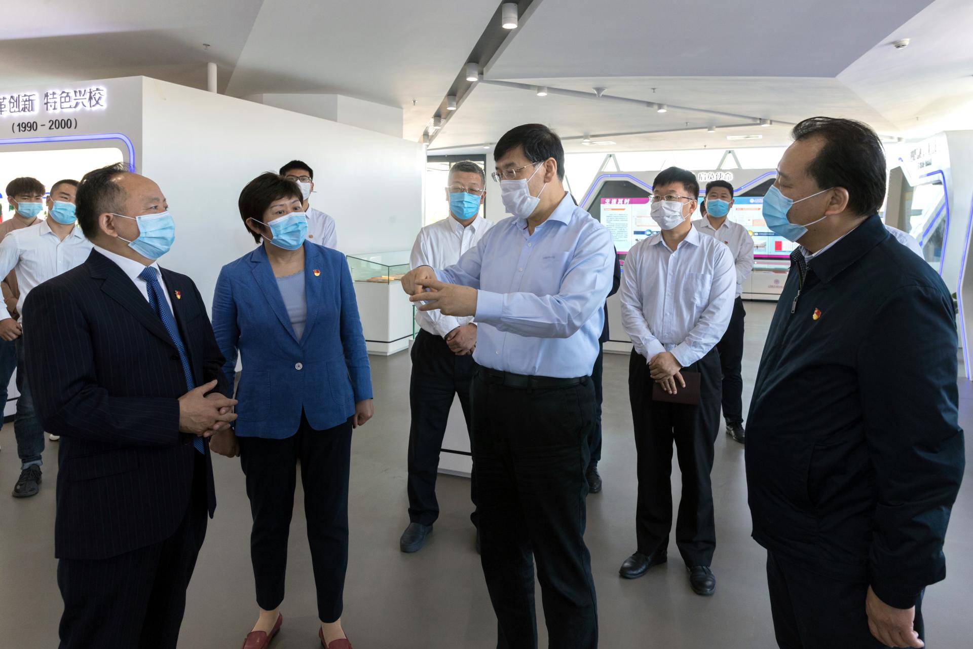 5月27日上午,市委副书记阴和俊来到我校,就高校党建和思想政治工作、产教融合等进行调研。市委副秘书长、市委办公厅副主任刘钊,市委教育工委常务副书记、市教委主任荆洪阳参加调研。校党委书记张金刚,校党委副书记、校长刘欣,校党委副书记马雷,校党委常委、副校长陈建国,有关部门负责人分别参加相关活动。