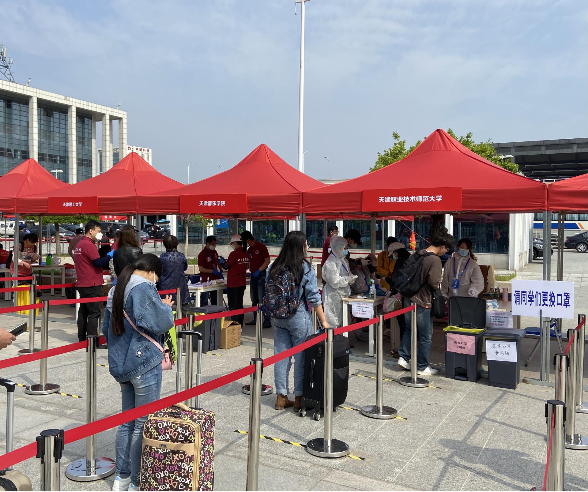 本网讯【通讯员 陈明、邢禹、魏兵、李刚】5月9日凌晨,天津下着蒙蒙细雨,初夏的微风刮在脸上有了一点点凉意。风里雨里,在“三站一场”静静等待的天职师大工作人员,怀着激动的心情,迎来了第一位返校复课的毕业生。这也标志着学校2020年春季学期学生返校工作正式拉开序幕。
