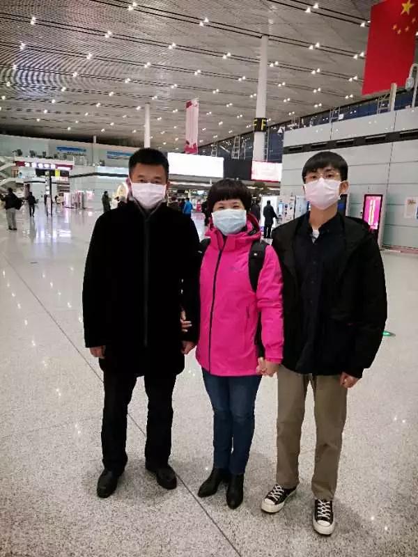 | 2月15日,邓红英奔赴抗疫一线,一家三口在机场合影 |