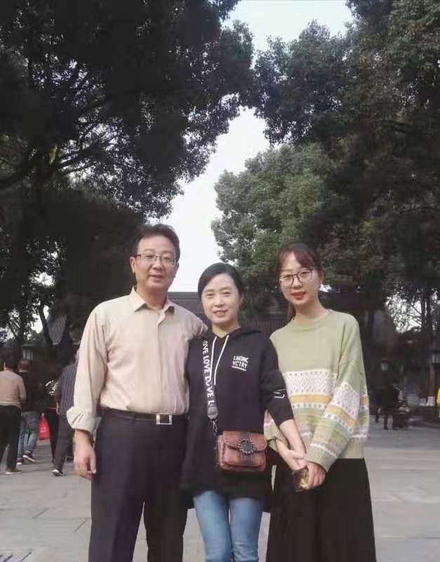 | 朱文琪与父母合影 |