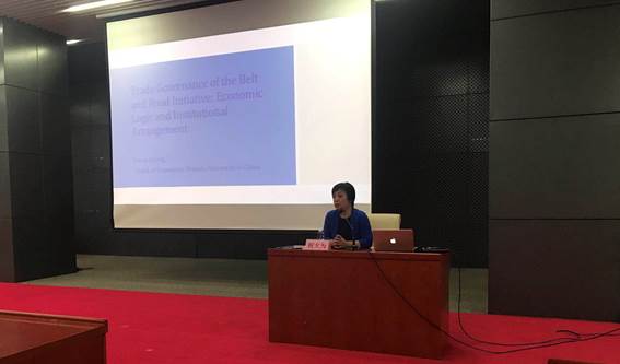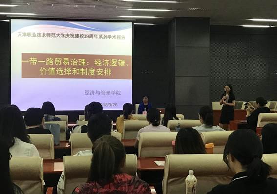 本网讯(通讯员 主孟凡)近日,我校科技产业处组织开展系列学术报告会,首场学术报告会于9月26日下午举行,经济与管理学院邀请中国人民大学经济学院教授、北京WTO事务研究咨询中心首席专家程大为作学术报告。此次报告会主题为“一带一路贸易治理:经济逻辑、价值选择和制度安排”。经济与管理学院副院长齐莉丽主持,科技产业处主要负责同志,经济与管理学院教师,研究生及本科生参加。