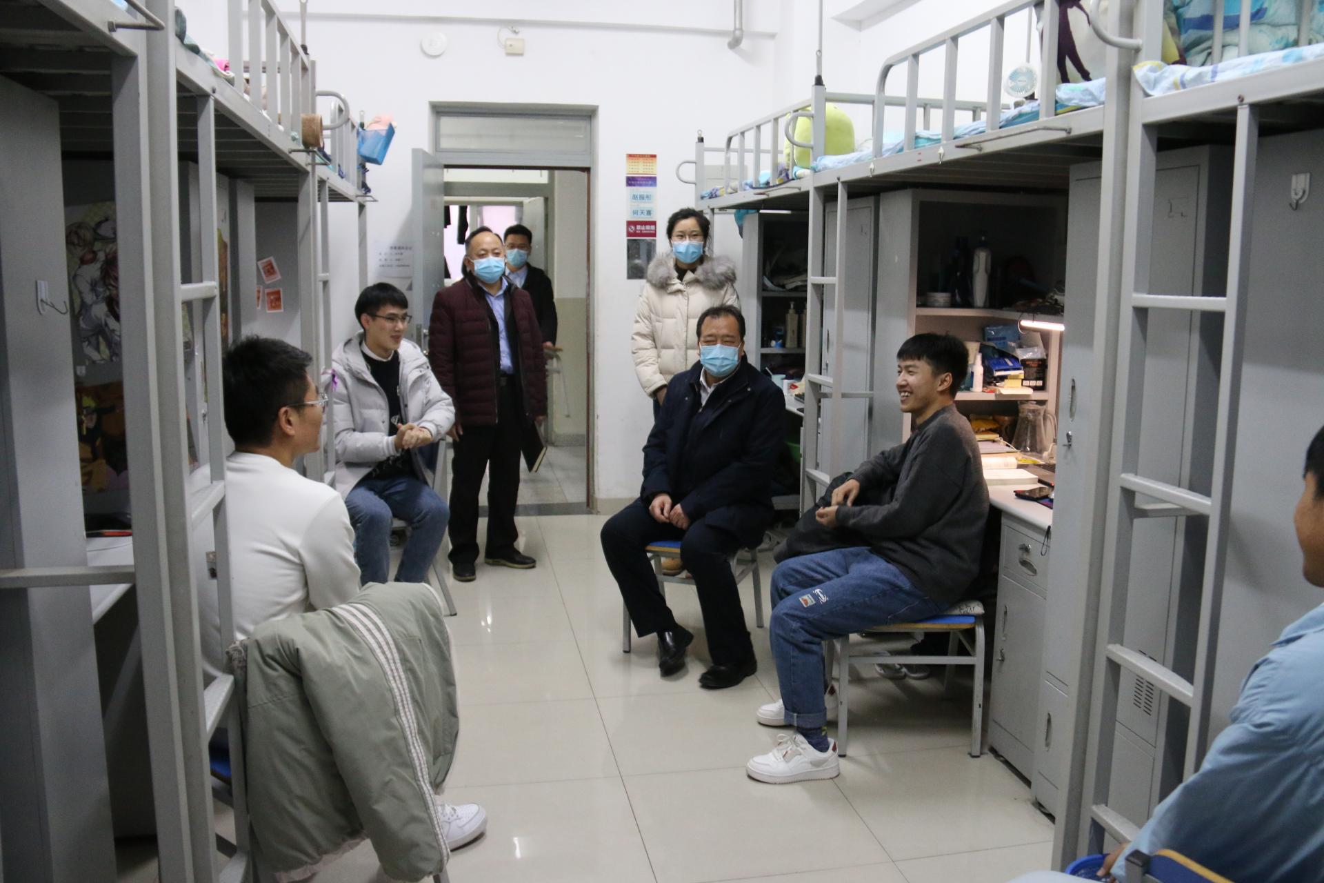 在联系的学生宿舍,张金刚与学生们拉家常,“宿舍暖气的温度热不热?”“学校课程安排的是否合理?”“食堂饭菜是否可口?”“对学校工作有什么意见建议?”“就业有何考虑?”“考研准备如何?”,细致入微的关怀让同学们感到十分温暖。交谈中,他嘱咐同学们要做好常态化疫情防控,多锻炼身体、注意自我调节、常与家人联系,鼓励他们珍惜时光、认真学习、勤于思考、提升自我,祝福同学们身体健康、学业有成,与祖国共奋进、与时代同步伐、与天职师大齐发展。