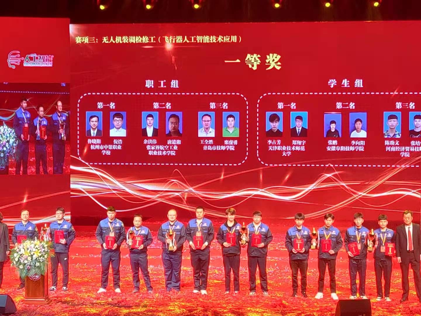本网讯【通讯员 张翔宇】日前,由人力资源社会保障部、中国机械工业联合会共同举办的2020年全国人工智能应用技术技能大赛总决赛在山东省青岛市落幕。我校工程实训中心无人机工作室学生李占芳、郑翔宇获得无人机装调检修工(飞行器人工智能技术应用)项目学生组冠军,指导教师张翔宇获“优秀教练”荣誉称号,学校获“冠军选手单位”荣誉称号。