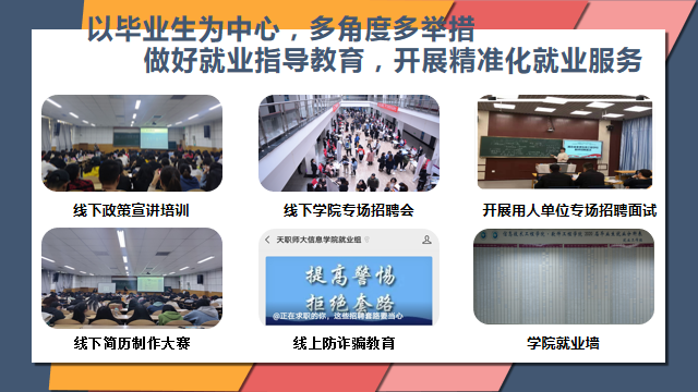 三是积极推动大学生就业工作,“服务育人”再上新台阶。学院党委认真贯彻落实习近平总书记关于加强高校毕业生就业工作的重要指示精神,将大学生就业工作与贯彻落实中央“六稳”“六保”工作紧密结合在一起,不断创新“服务育人”功能,不断开辟“服务育人”途径,千方百计促进毕业生更加充分更高质量就业,为新时代中国特色社会主义事业服务。