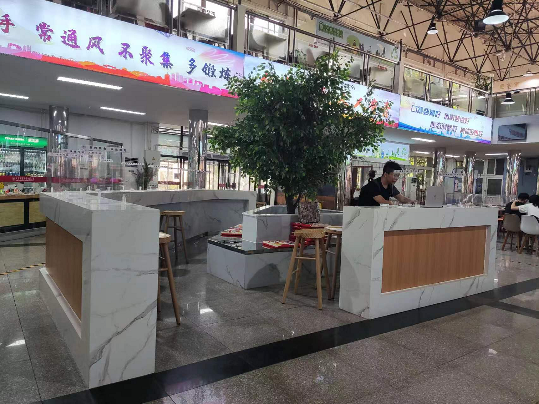 多措并举,进一步改善餐厅就餐环境。后勤处组织对各餐厅设施设备进行全面维修维护,更新标识标牌,更换疫情防控标线、引导线,摆放新鲜绿植,让餐厅“新起来”“绿起来”。精心设计餐厅入口标识牌,整体规划菜品介绍灯箱,设置透明餐桌隔板,让食堂“亮起来”。设立“营养健康角”,摆放测量身高、体重等设备,方便师生掌握身体状况,鼓励师生“动起来”。