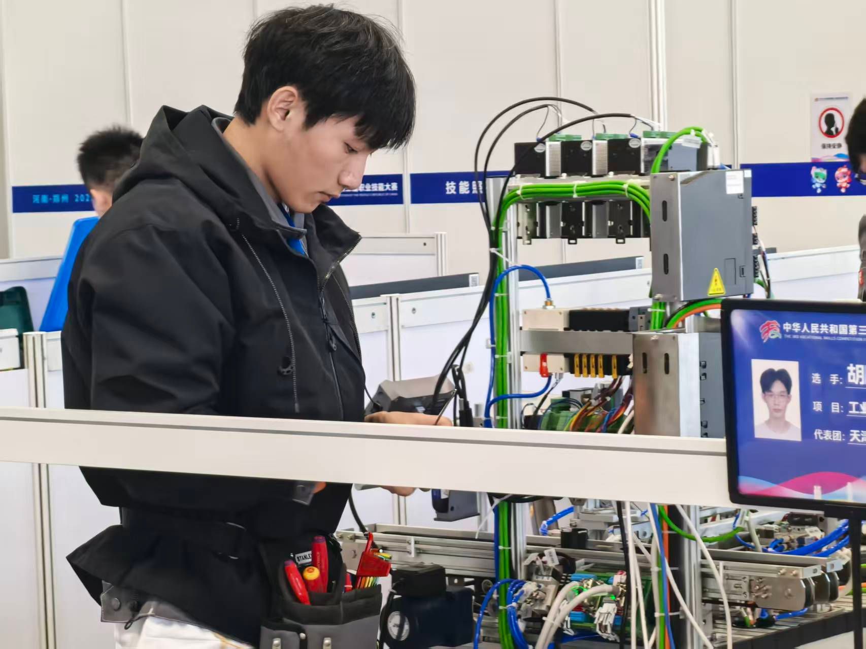 凭借扎实的训练、灵活的应对以及“优先攻克高分题”的战术安排,符德基与胡亮最终以总分第一的成绩斩获金牌,助力天津实现工业4.0赛项“三连冠”。