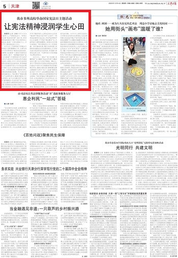 本网讯【通讯员 李硕】12月4日,第十二个国家宪法日,《天津日报》报道我校马克思主义学院将“法治课堂”搬到庭审现场,让学子零距离感受司法实践。
