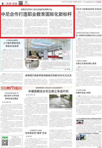 本网讯【通讯员 余瑛】12月16日,《天津日报》报道由我校、天津渤海职业技术学院与尼加拉瓜国家技术培训署(INATEC)合作共建的美洲首家鲁班工坊——尼加拉瓜鲁班工坊揭牌启运情况。