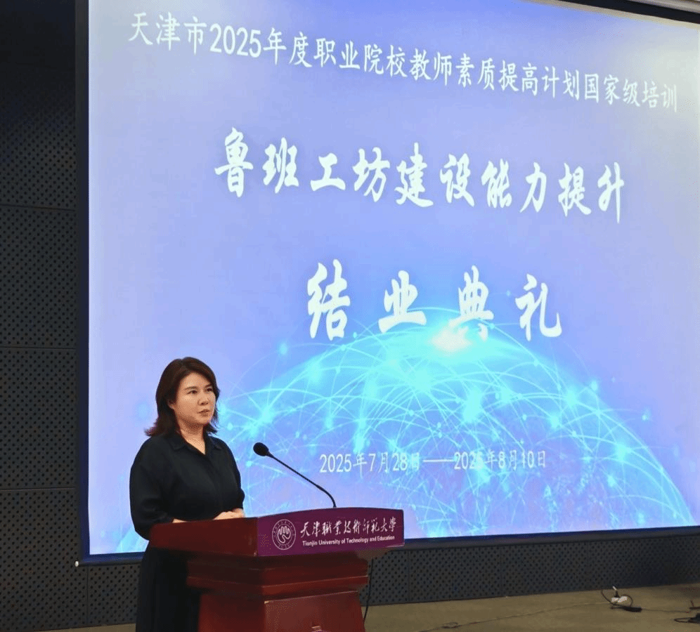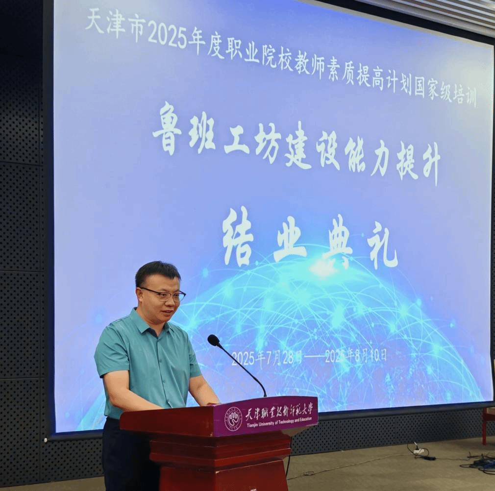 本网讯【通讯员 沈翼飞】8月10日,天津市2025年度职业院校教师素质提高计划国家级培训——鲁班工坊建设能力提升项目结业典礼在我校国际交流处三楼报告厅举行。来自天津市19所中高职院校的31位参训骨干教师齐聚一堂,结业典礼由我校外国语学院副院长杨立学主持,外国语学院院长翟风杰教授出席并致辞。