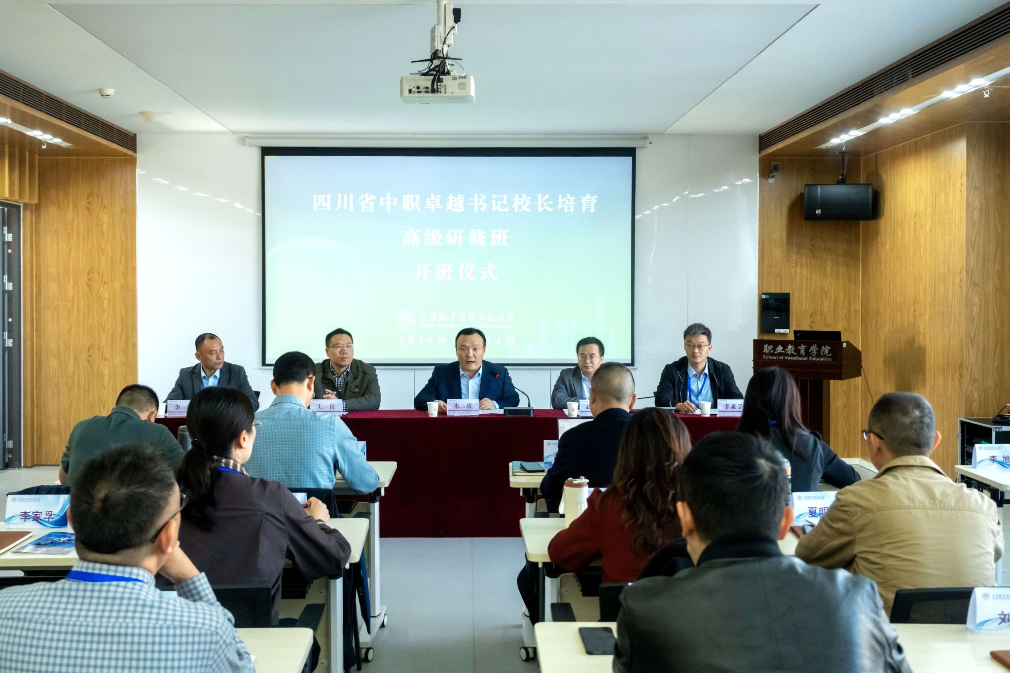 本网讯【通讯员 杨燕楠】10月14日,四川省名校长(书记)培育——中职卓越校长研修班在天职师大成功开班。我校党委常委、副校长米靖出席开班仪式并讲话,职业教育学院院长赵文平、副教授王良,全体学员及研修班管理团队参加仪式。开班仪式由赵文平主持。